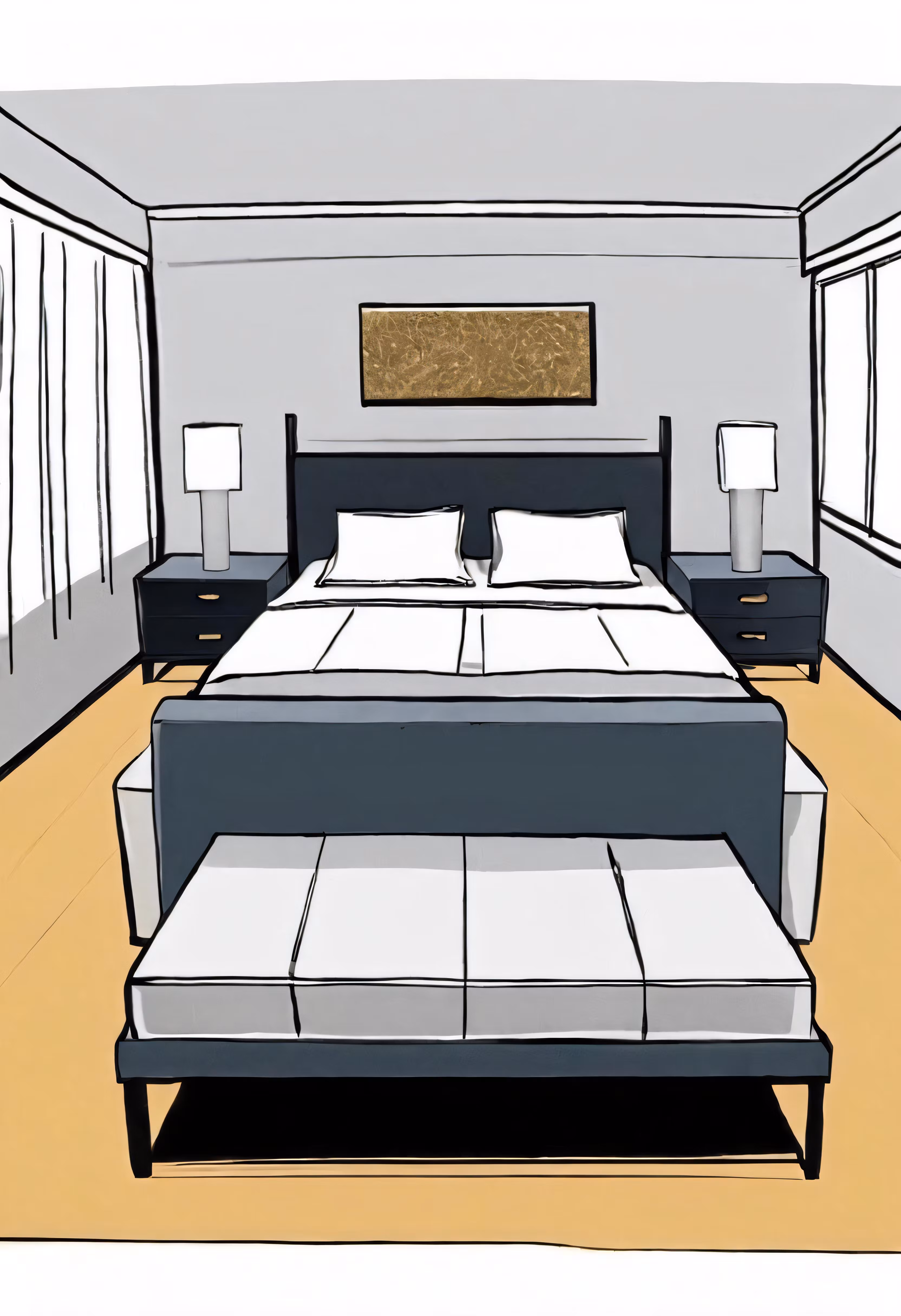High resolution picture, free to use, an advertisement for a bicycle shop and it says 30 /a modern bedroom with a large bed, window and hardwood floors