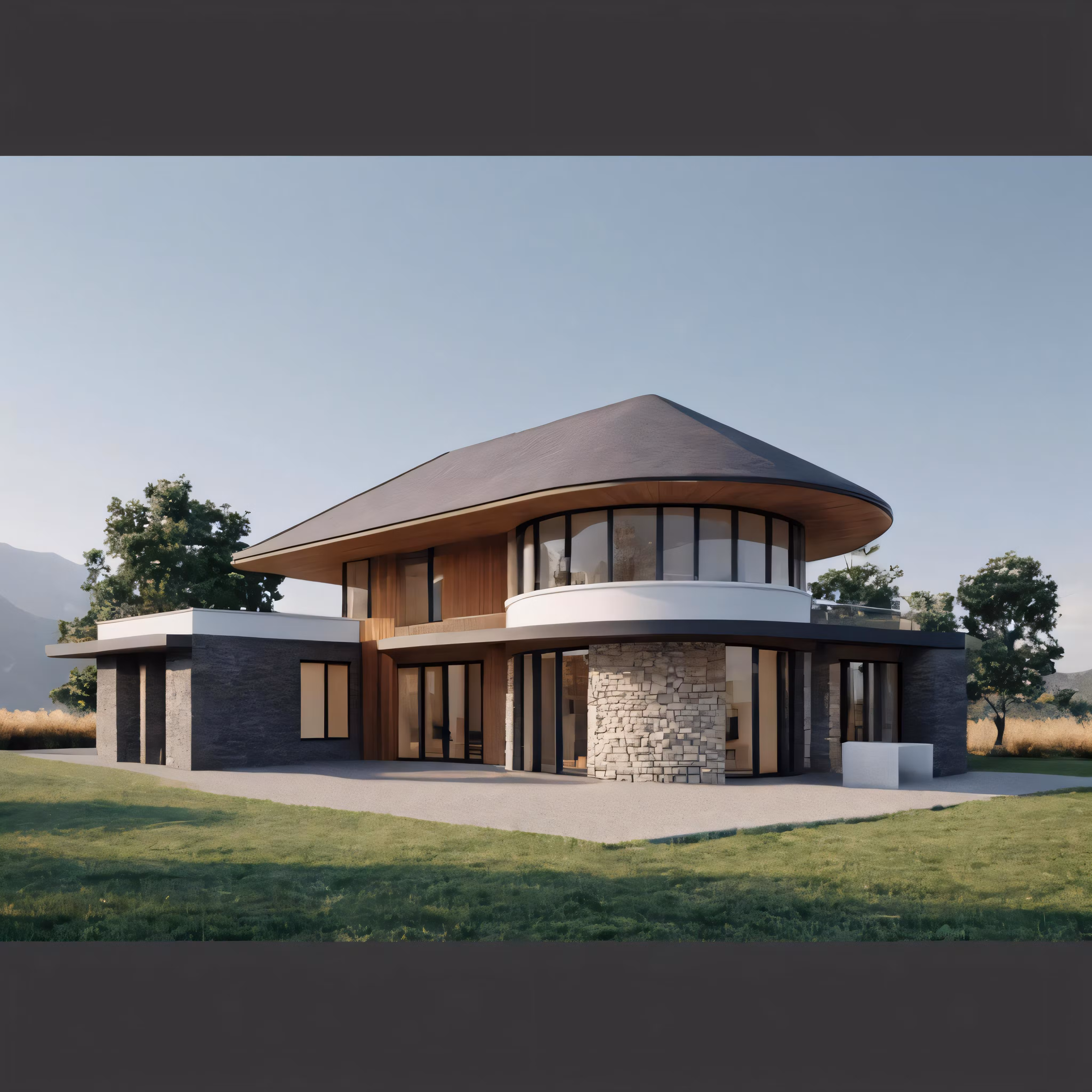 High resolution picture, free to use, an advertisement for a bicycle shop and it says 30 /a modern house that is very unusual in its exterior