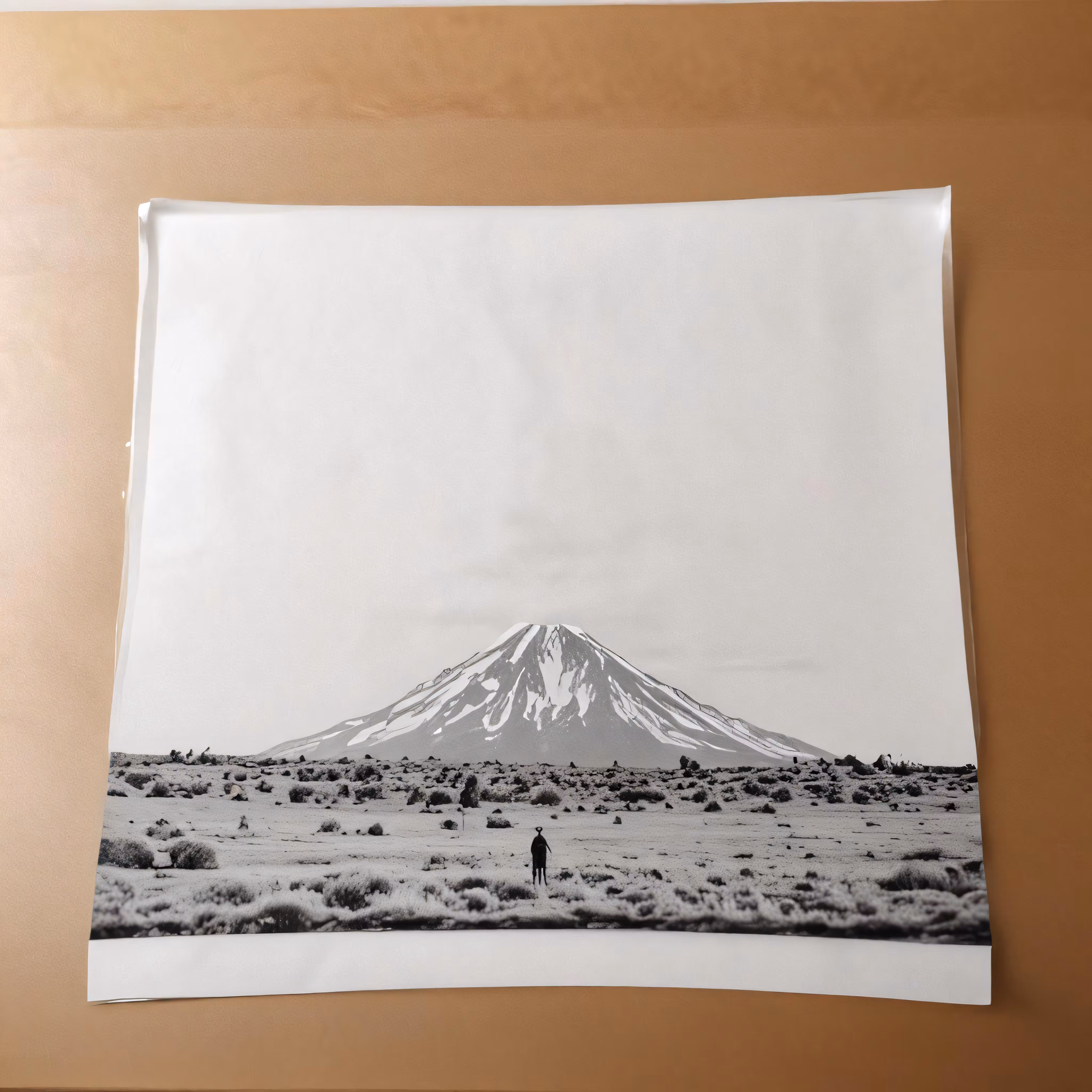 High resolution picture, free to use, an advertisement for a bicycle shop and it says 30 /a mountain is seen from a frame in black and white