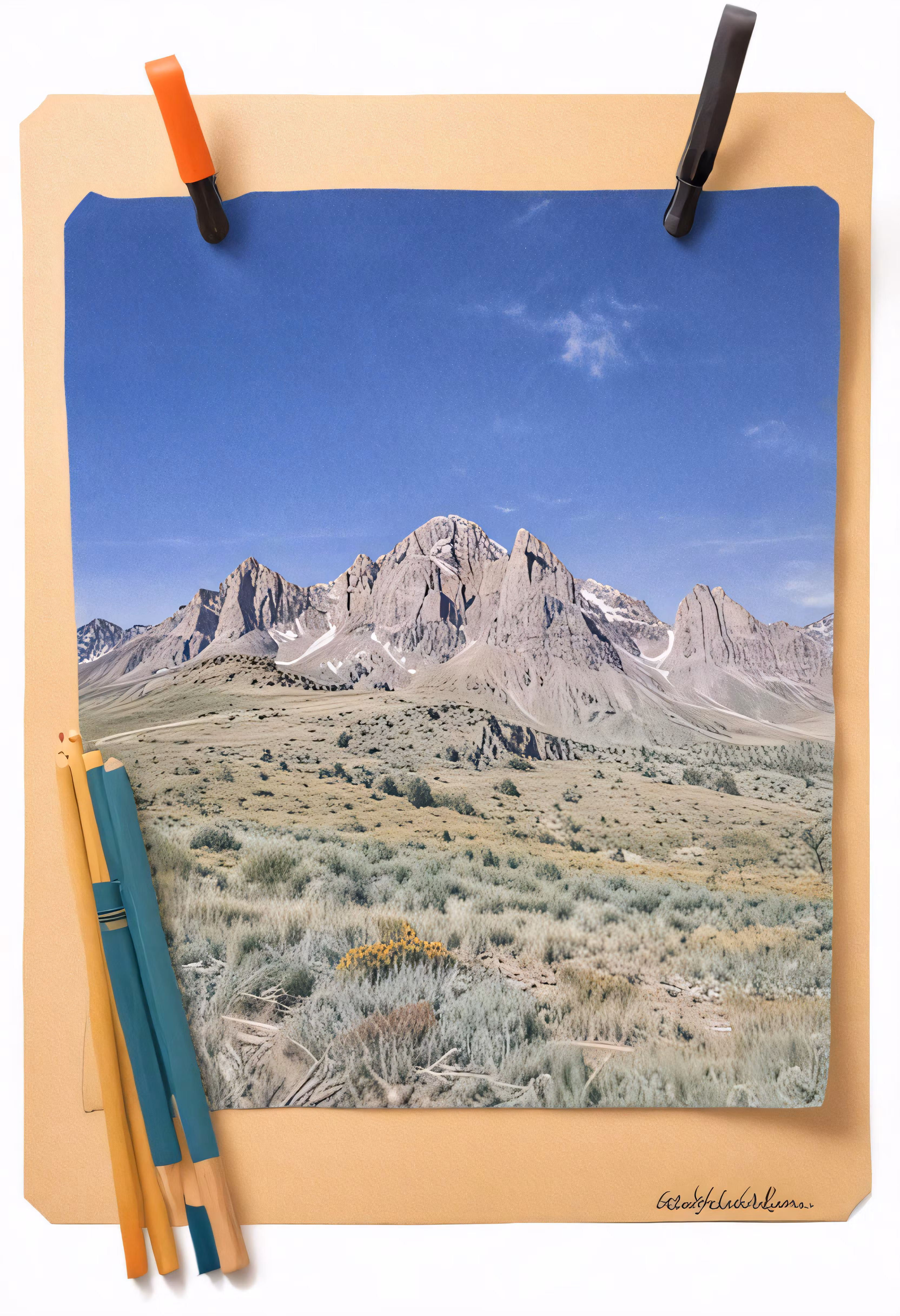 High resolution picture, free to use, an advertisement for a bicycle shop and it says 30 /a picture of a mountain range with colored pencils