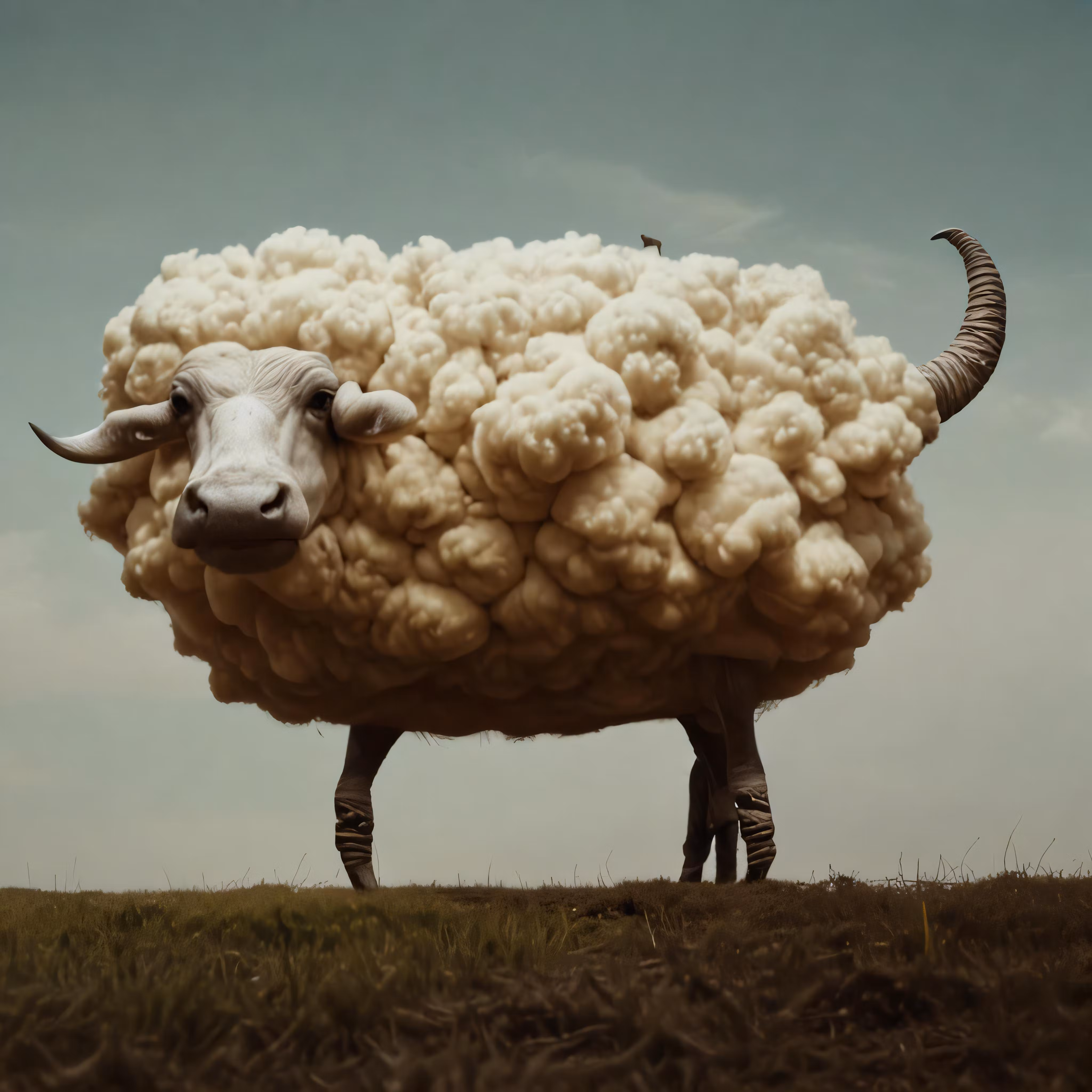 High resolution picture, free to use, an advertisement for a bicycle shop and it says 30 /a ram with long horns and huge chunky wool on its back stands in a field