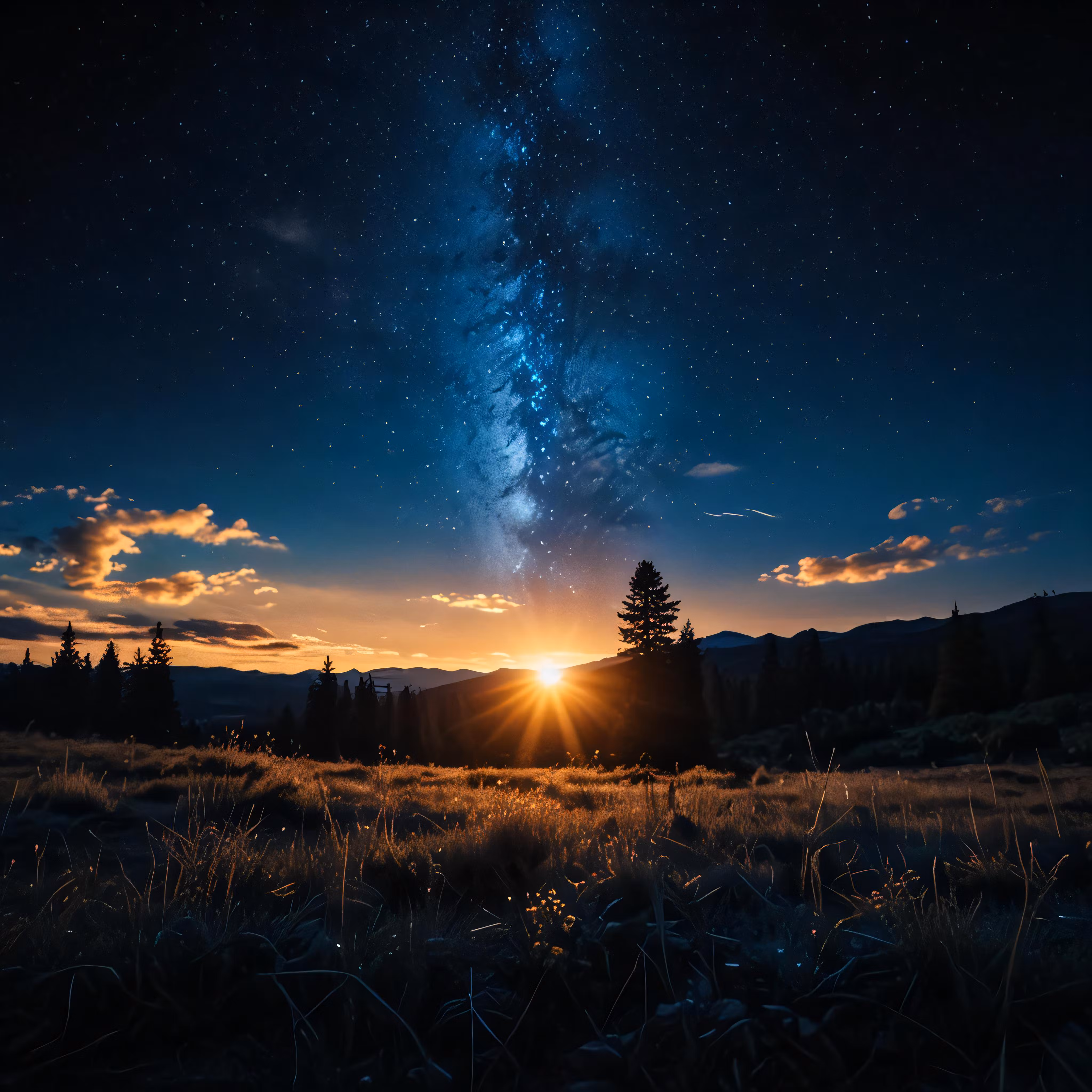 High resolution picture, free to use, an advertisement for a bicycle shop and it says 30 /a sky filled with stars next to a field