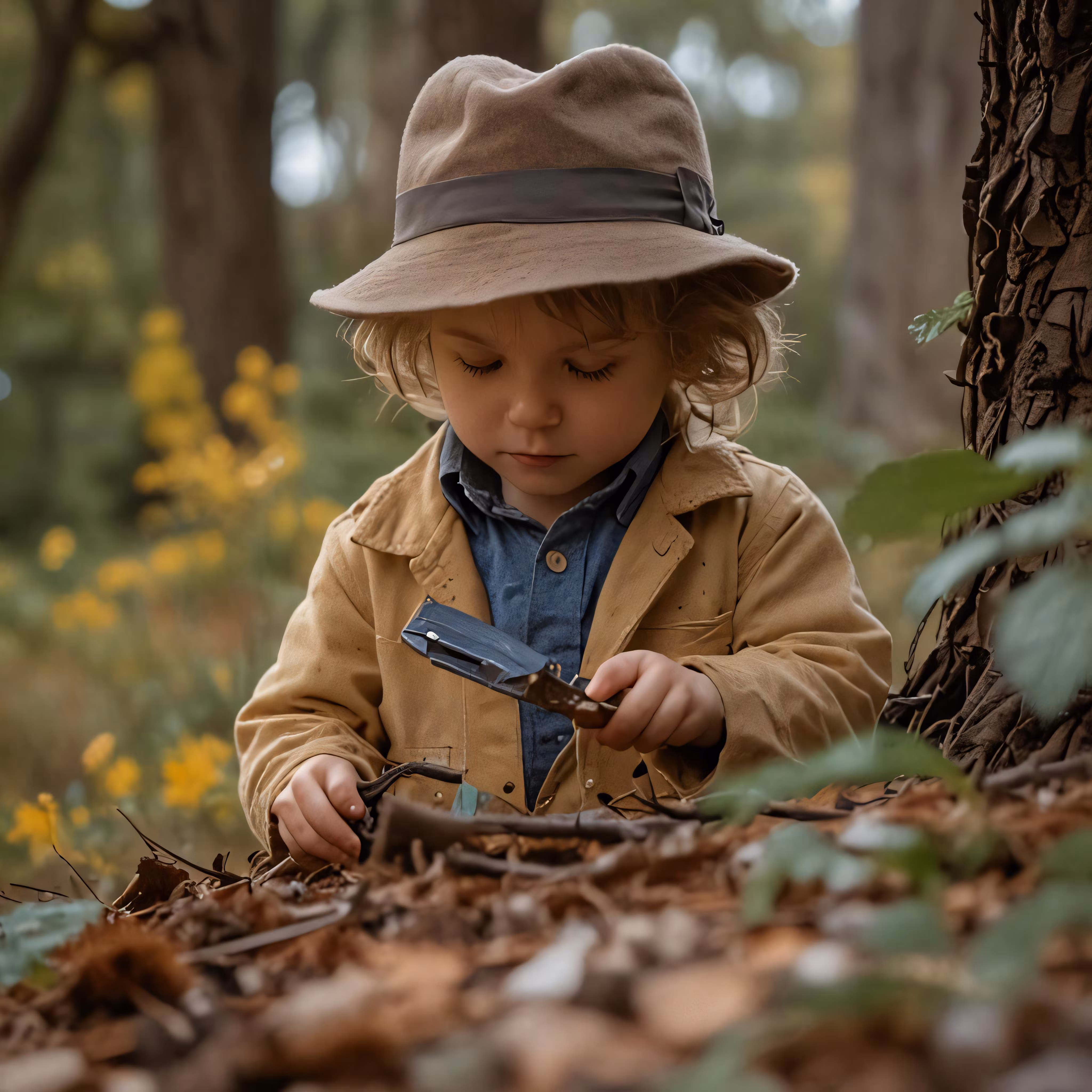 High resolution picture, free to use, an advertisement for a bicycle shop and it says 30 /a small child standing in the woods wearing a hat
