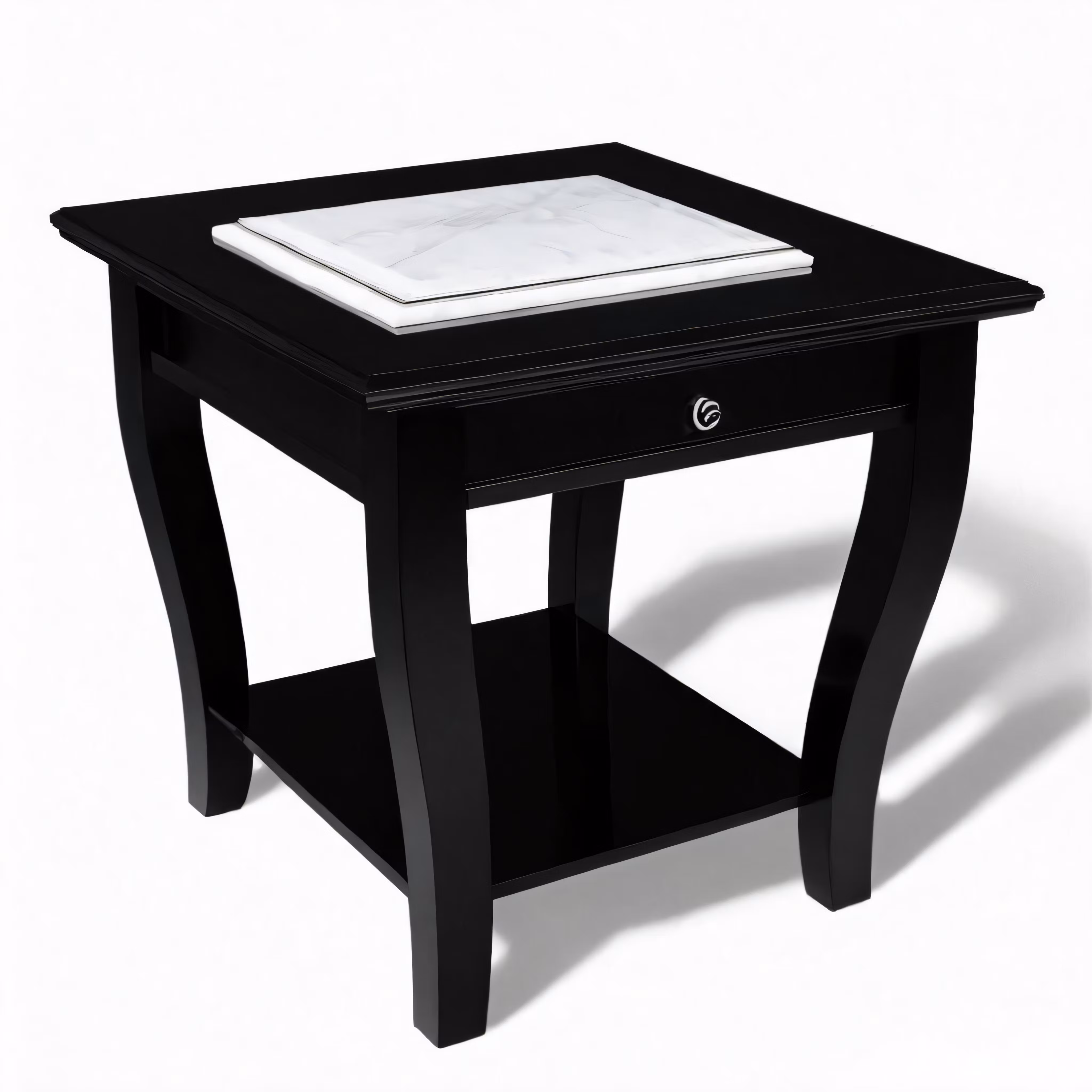 High resolution picture, free to use, an advertisement for a bicycle shop and it says 30 /a small side table with a black base and white top