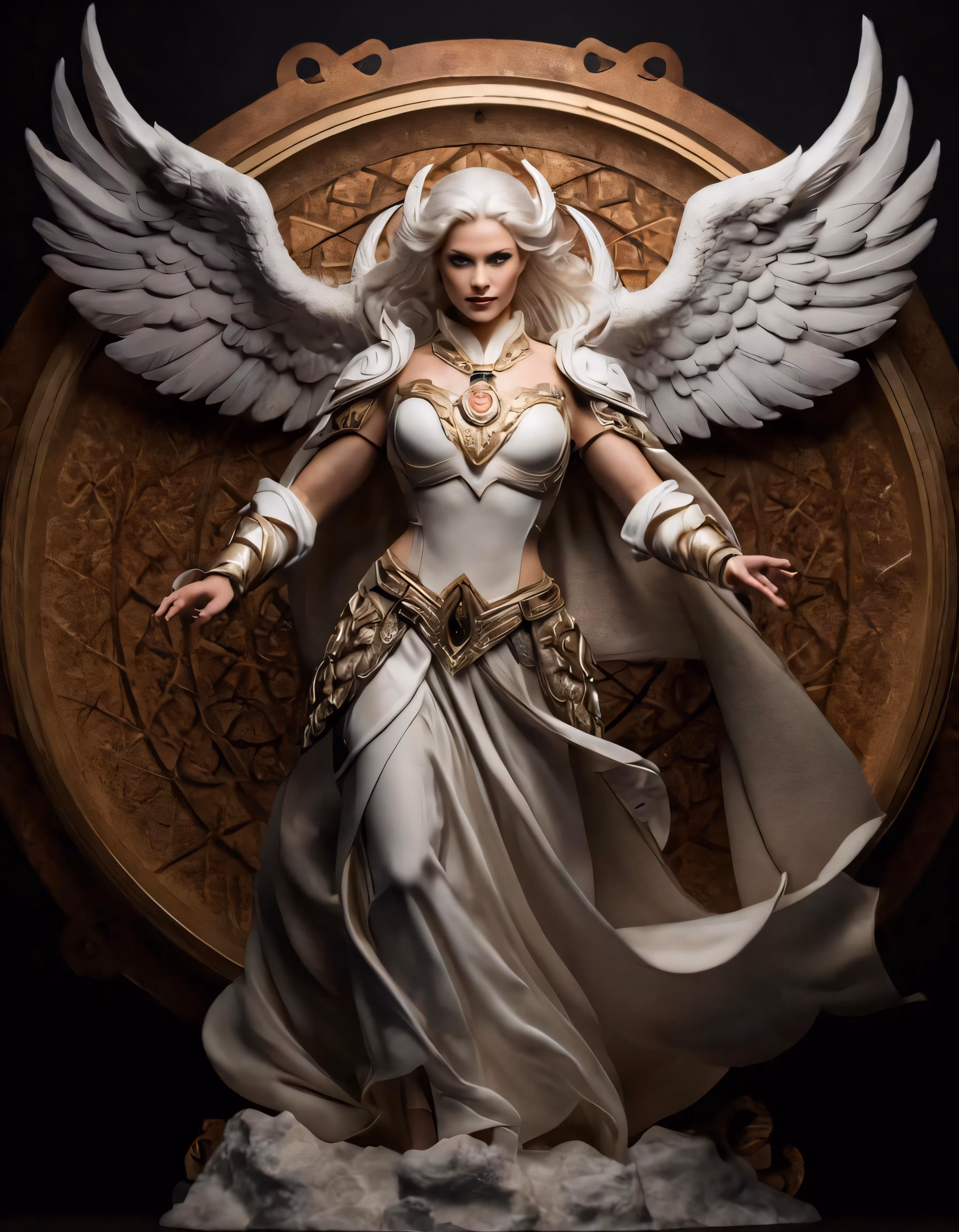 High resolution picture, free to use, an advertisement for a bicycle shop and it says 30 /a statue of a white haired woman with outstretched arms