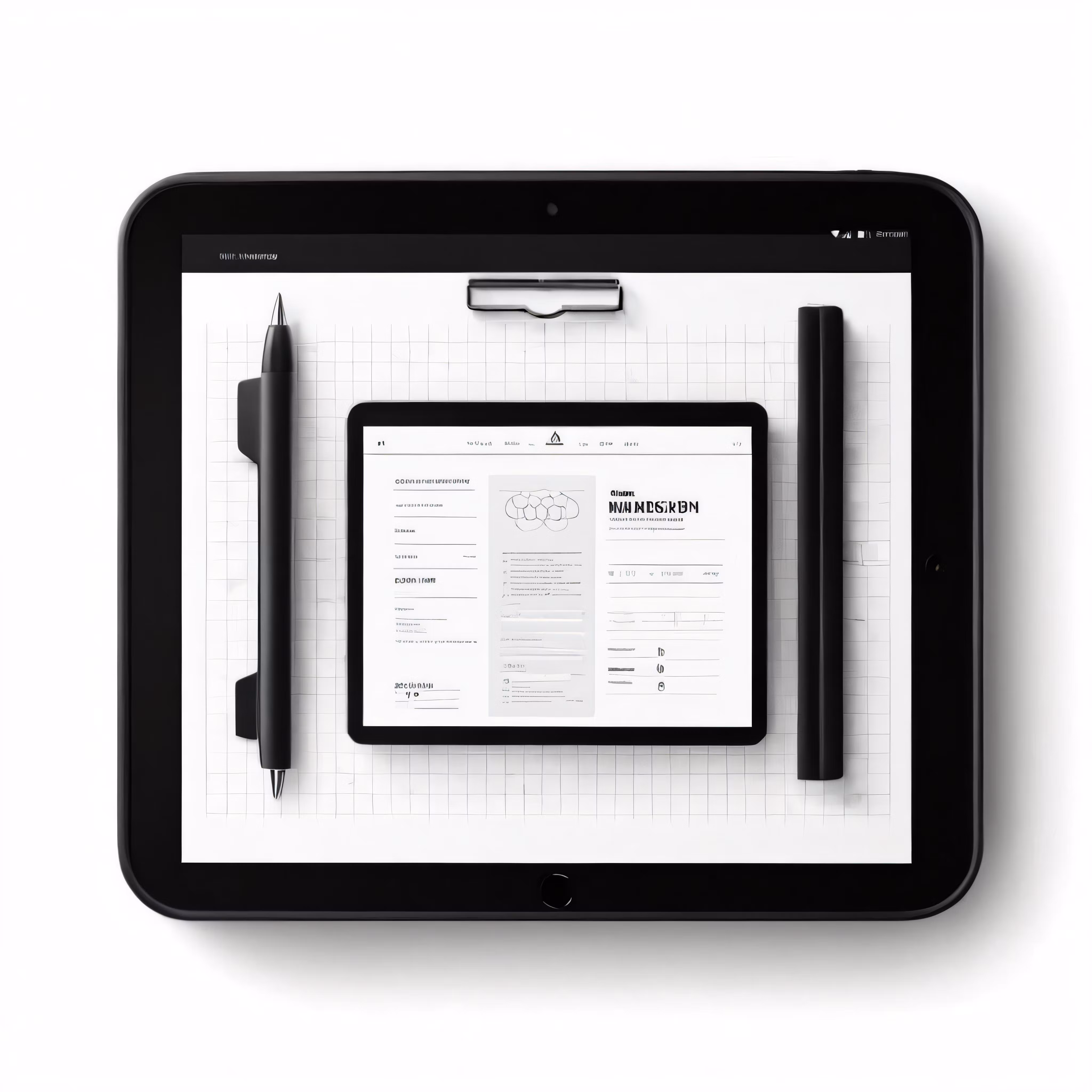 High resolution picture, free to use, an advertisement for a bicycle shop and it says 30 /a tablet with an app and pens on it