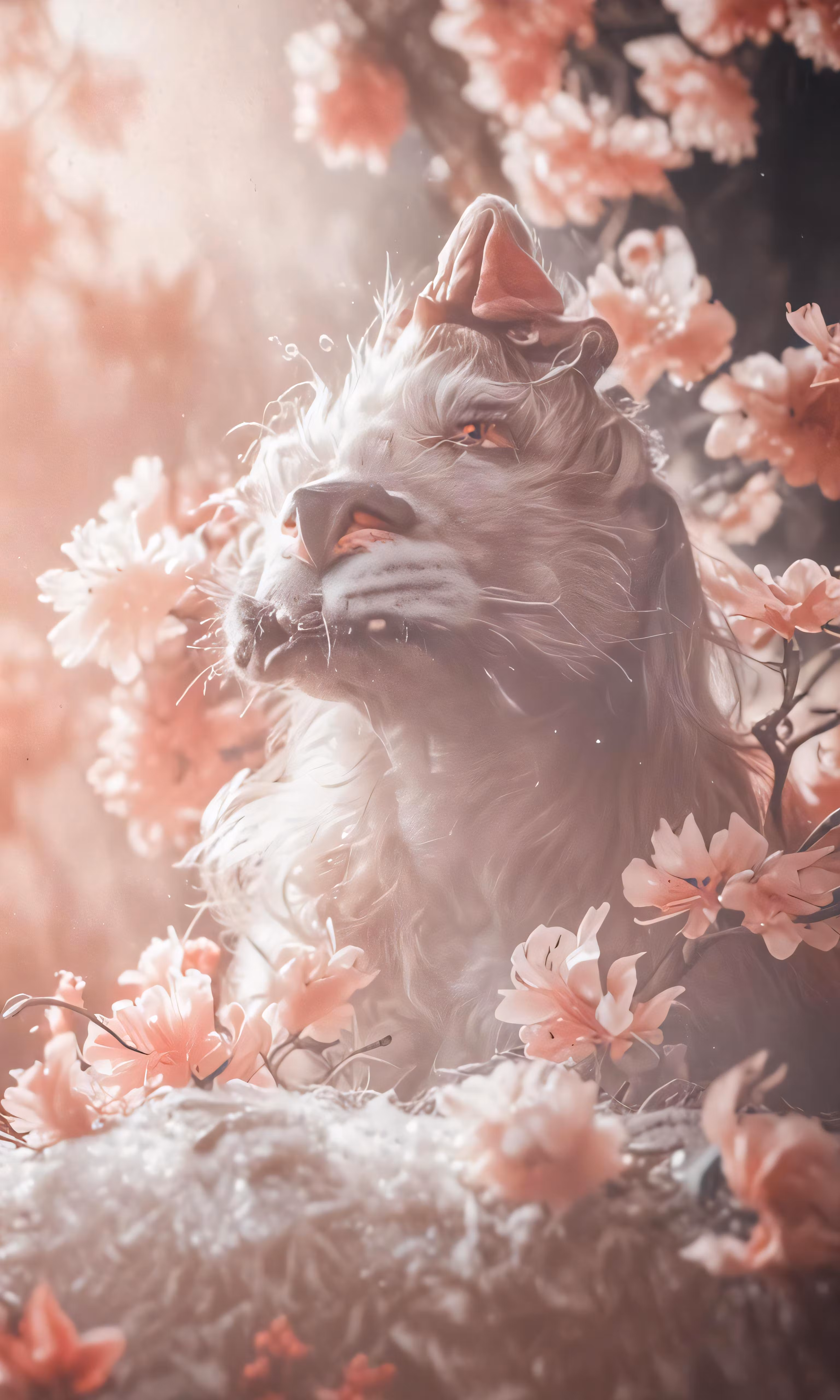 High resolution picture, free to use, an advertisement for a bicycle shop and it says 30 /a white cat with black eyes and nose in flowers