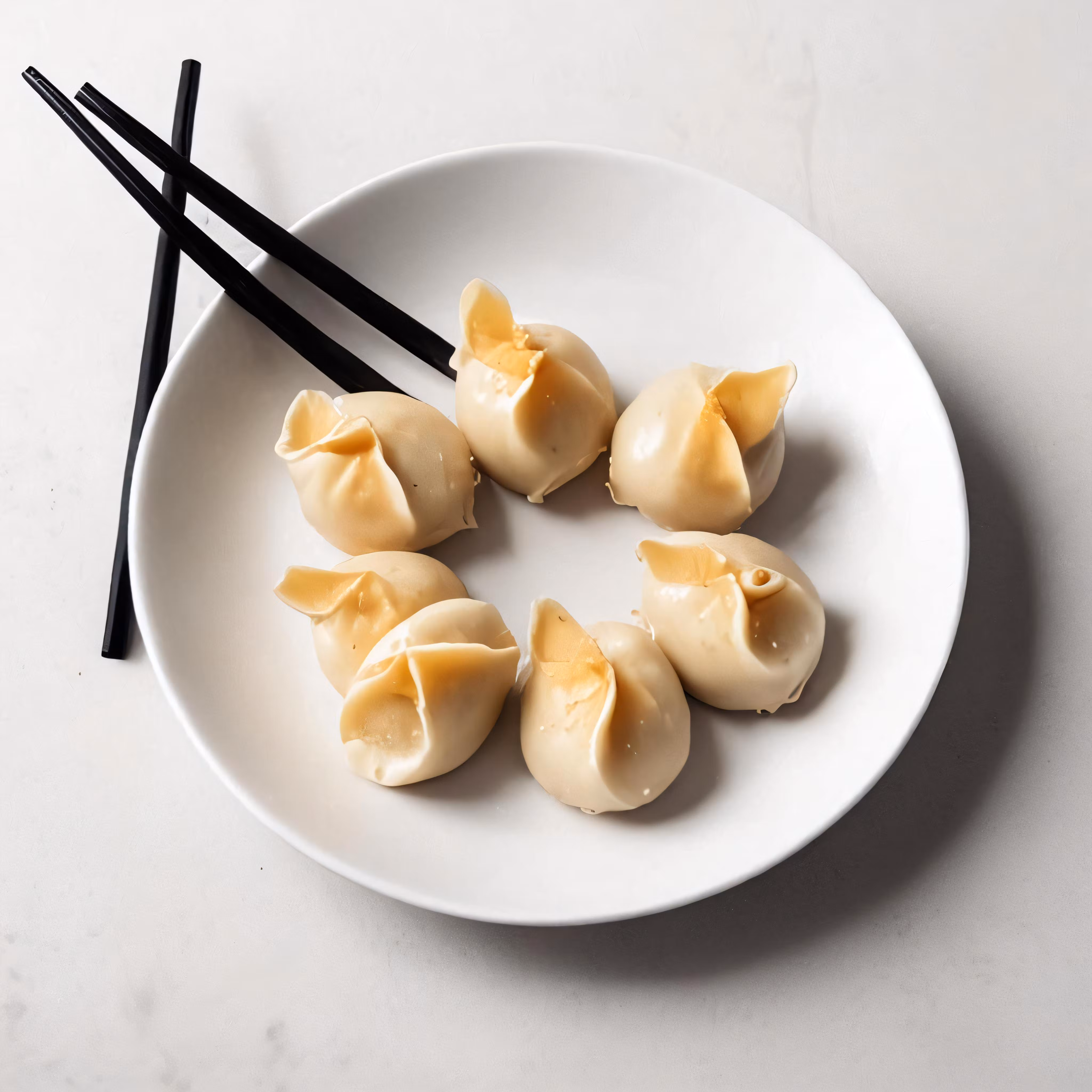 High resolution picture, free to use, an advertisement for a bicycle shop and it says 30 /a white plate with chopsticks on it containing four dumplings