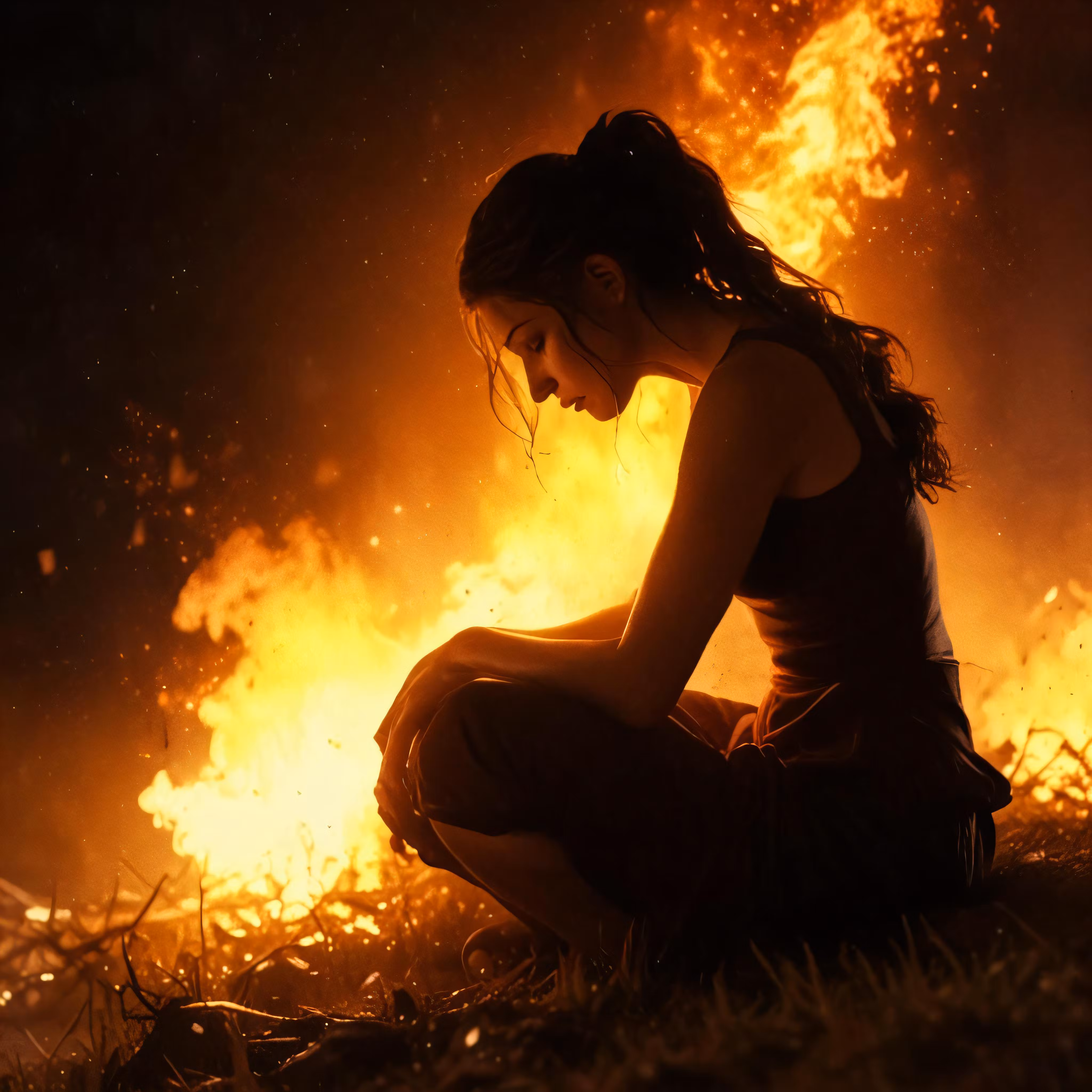 High resolution picture, free to use, an advertisement for a bicycle shop and it says 30 /a woman kneeling down next to fire