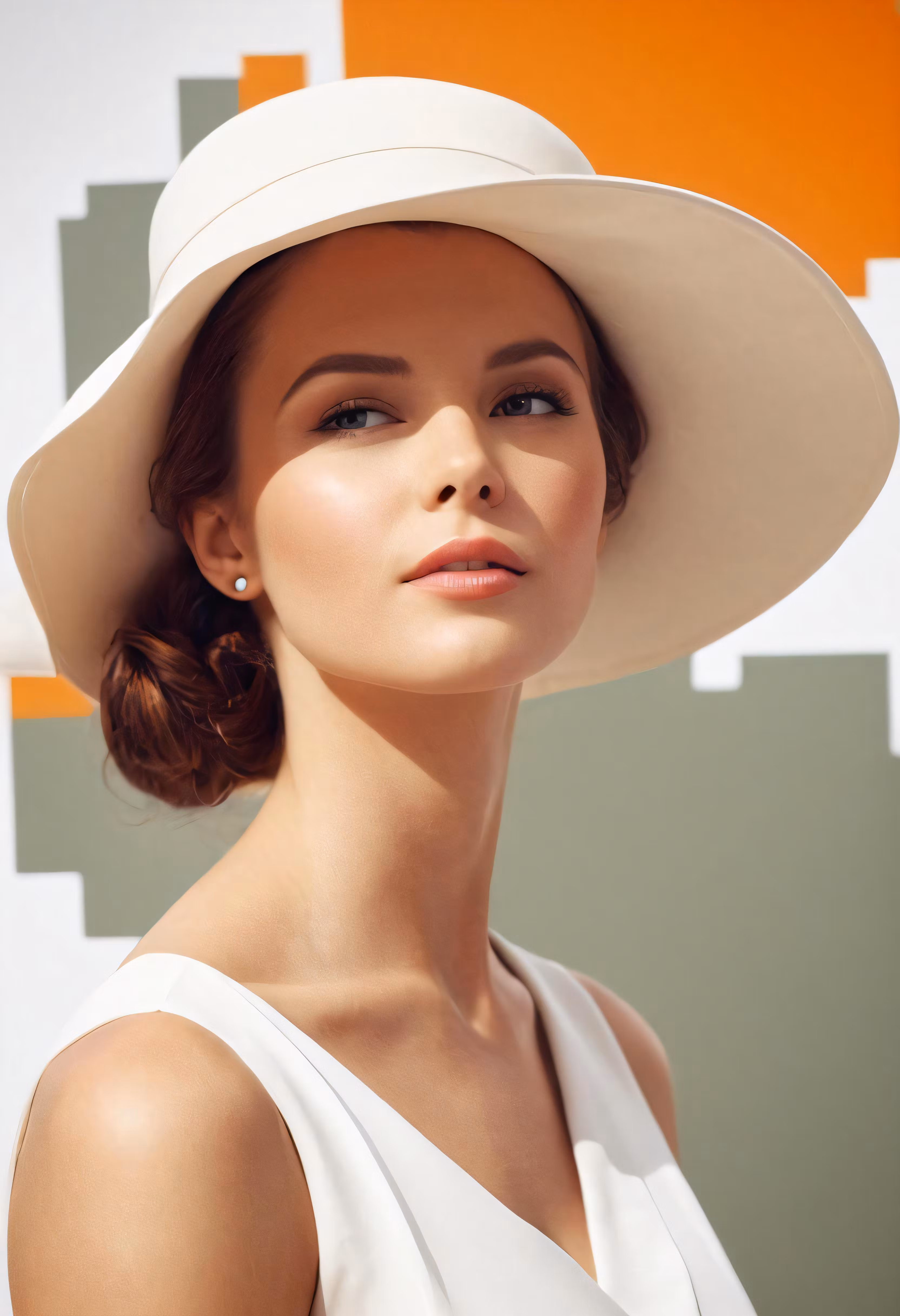High resolution picture, free to use, an advertisement for a bicycle shop and it says 30 /a woman wearing a white hat while standing next to a wall