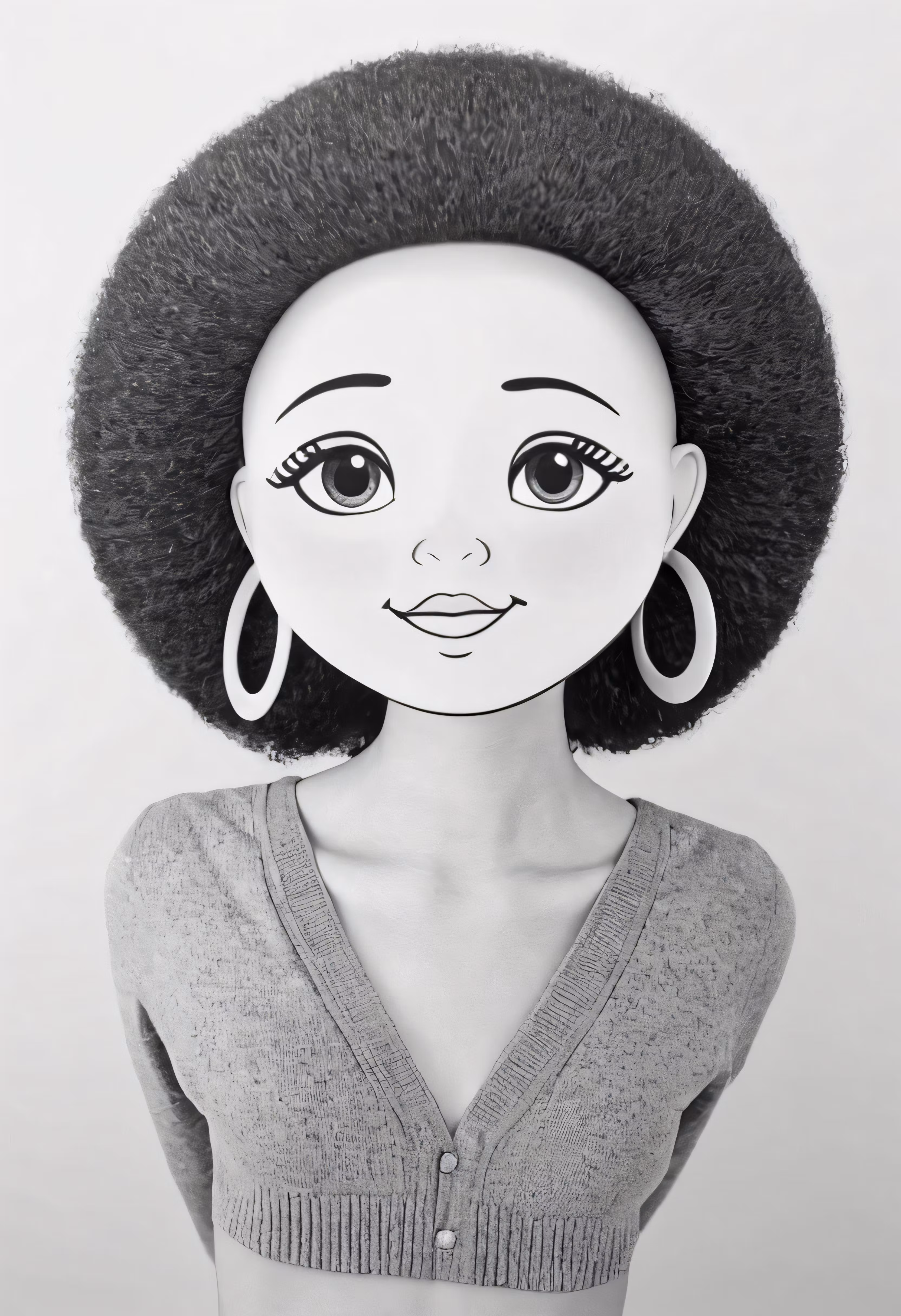 High resolution picture, free to use, an advertisement for a bicycle shop and it says 30 /a woman with large afros and an afro wig