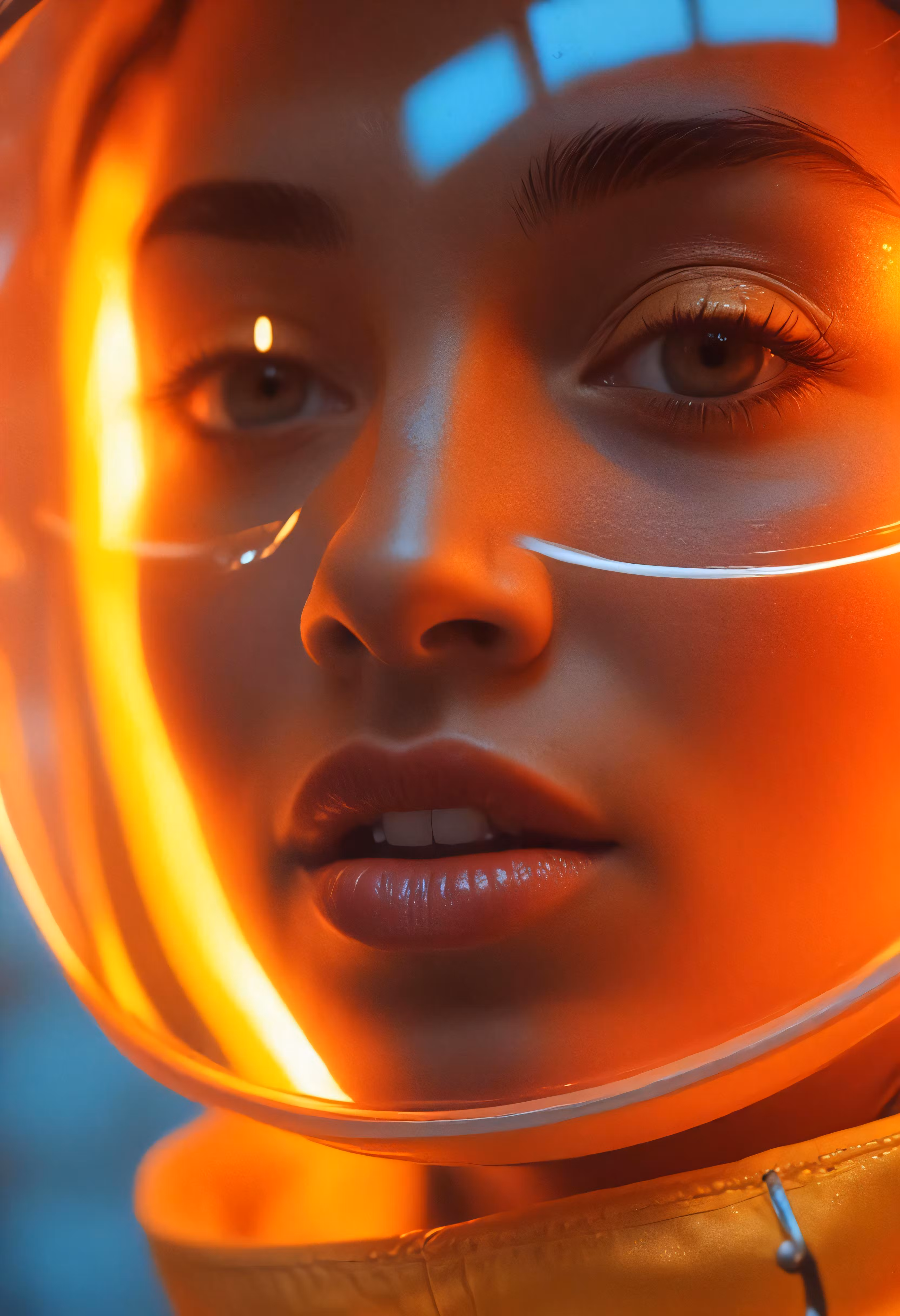 High resolution picture, free to use, an advertisement for a bicycle shop and it says 30 /a woman with yellow lights around her eyes