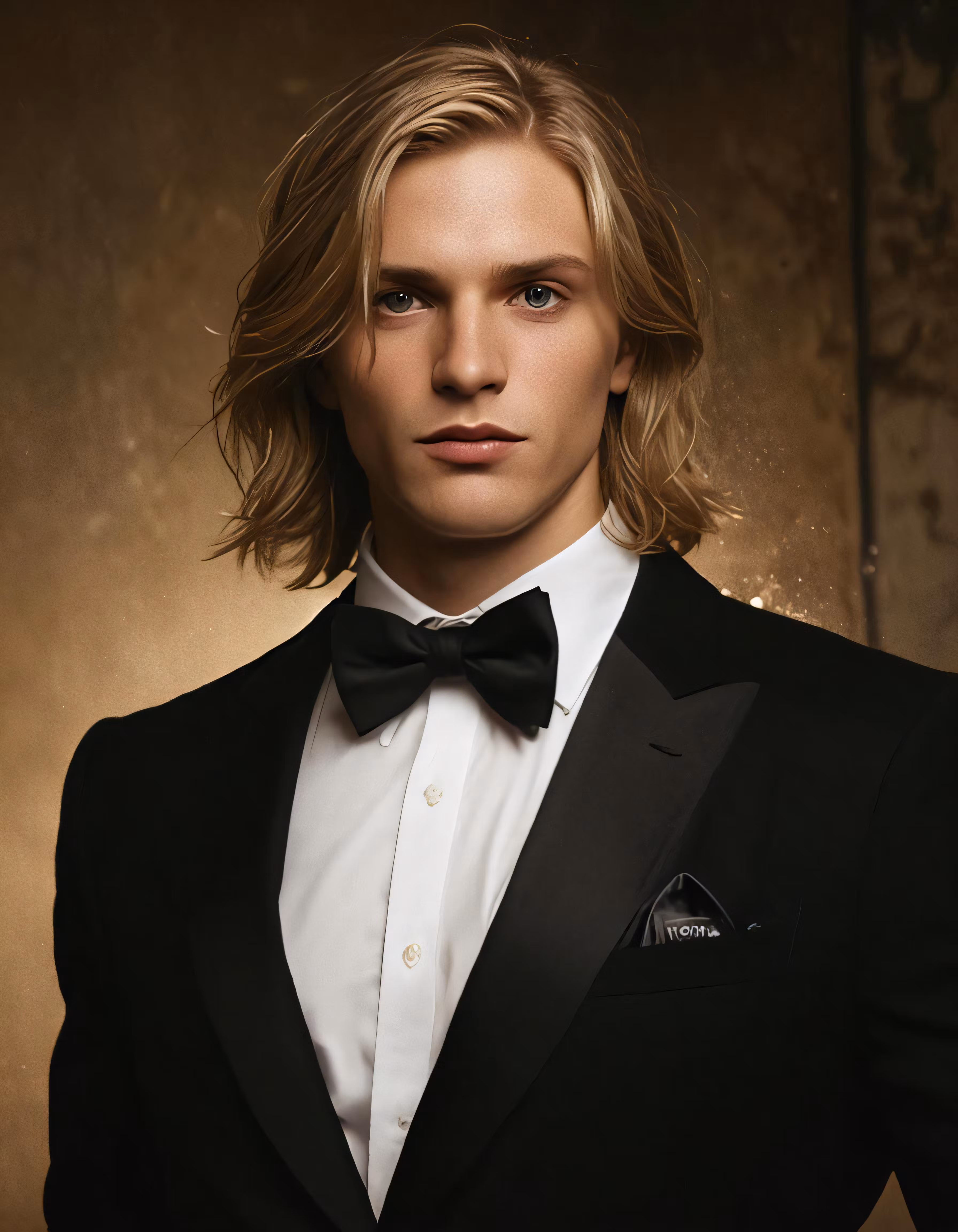 High resolution picture, free to use, an advertisement for a bicycle shop and it says 30 /a young man wearing a suit and bow tie