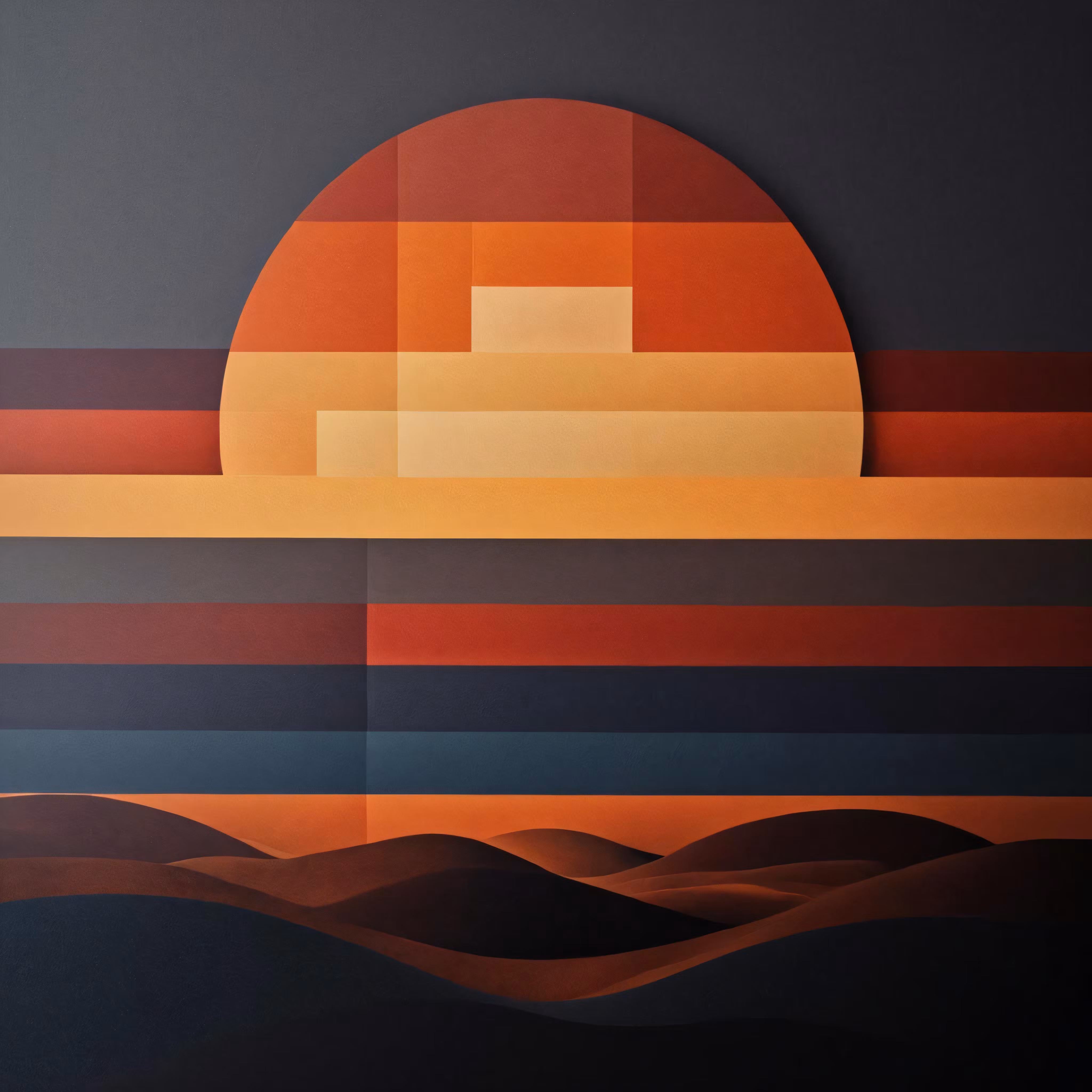 High resolution picture, free to use, an advertisement for a bicycle shop and it says 30 /an abstract painting of a red and yellow sunset over some sand dunes