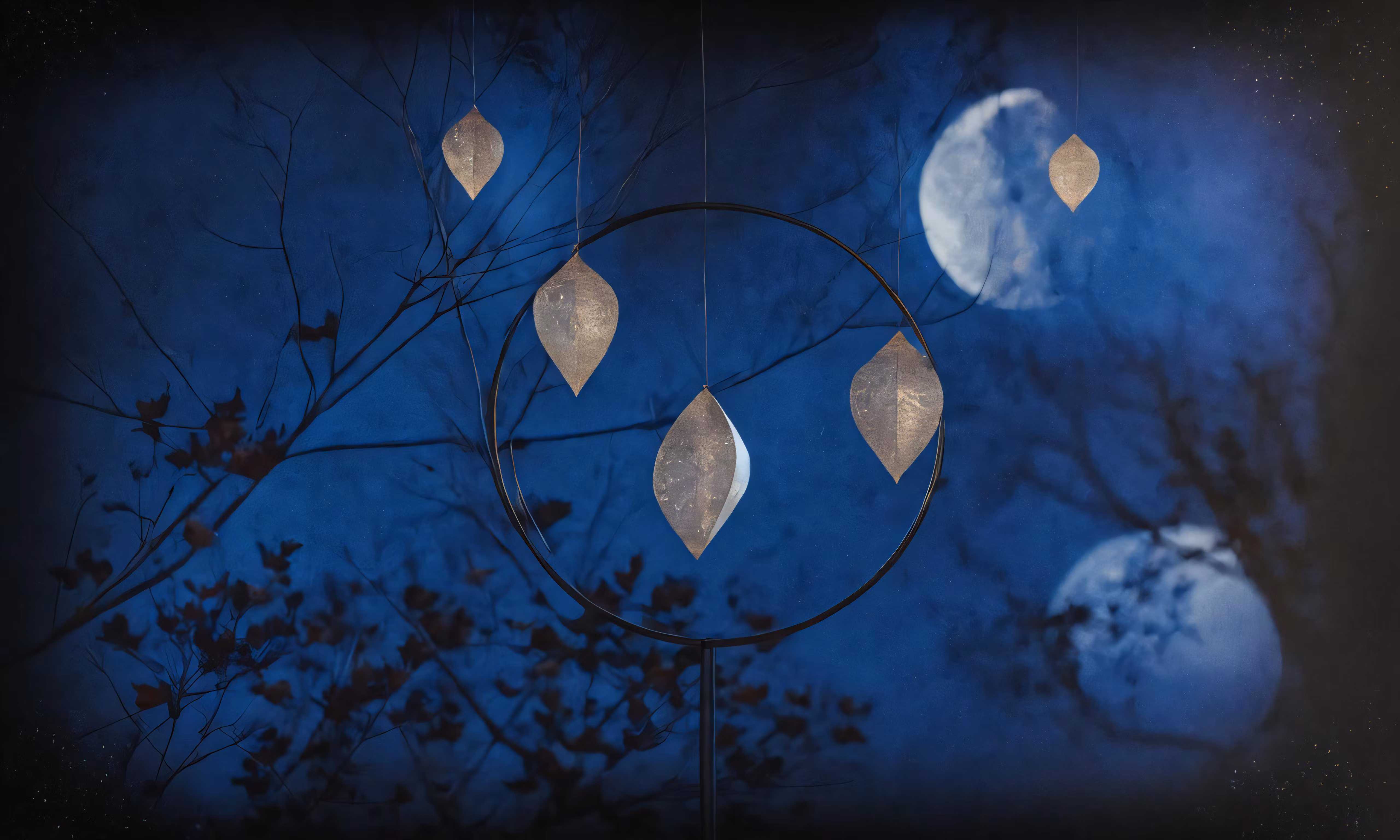High resolution picture, free to use, an advertisement for a bicycle shop and it says 30 /an abstract scene with leaves hanging from a pole