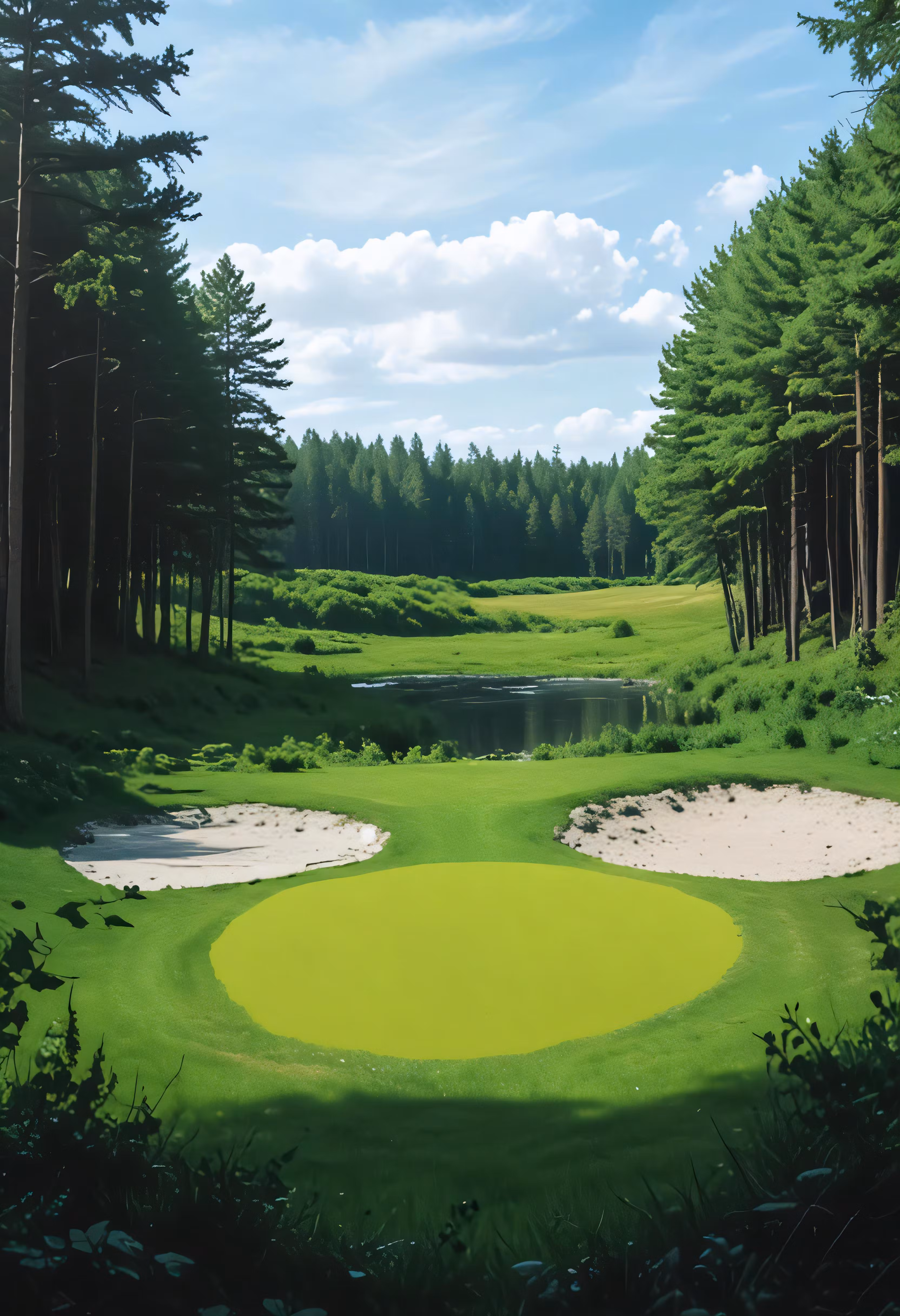 High resolution picture, free to use, an advertisement for a bicycle shop and it says 30 /an empty golf course near a stream and trees