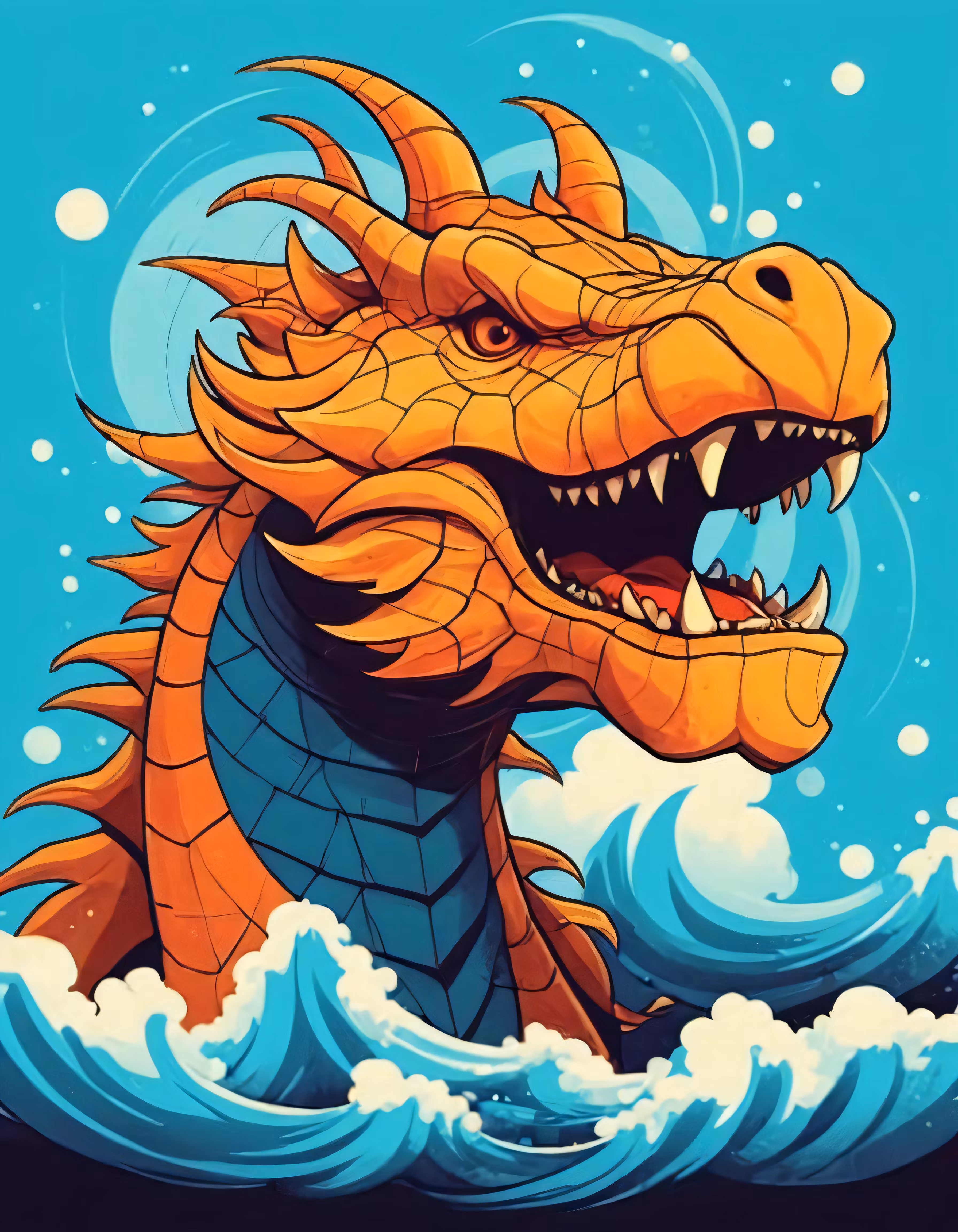 High resolution picture, free to use, an advertisement for a bicycle shop and it says 30 /an image of a godzilla head with mouth open in the ocean