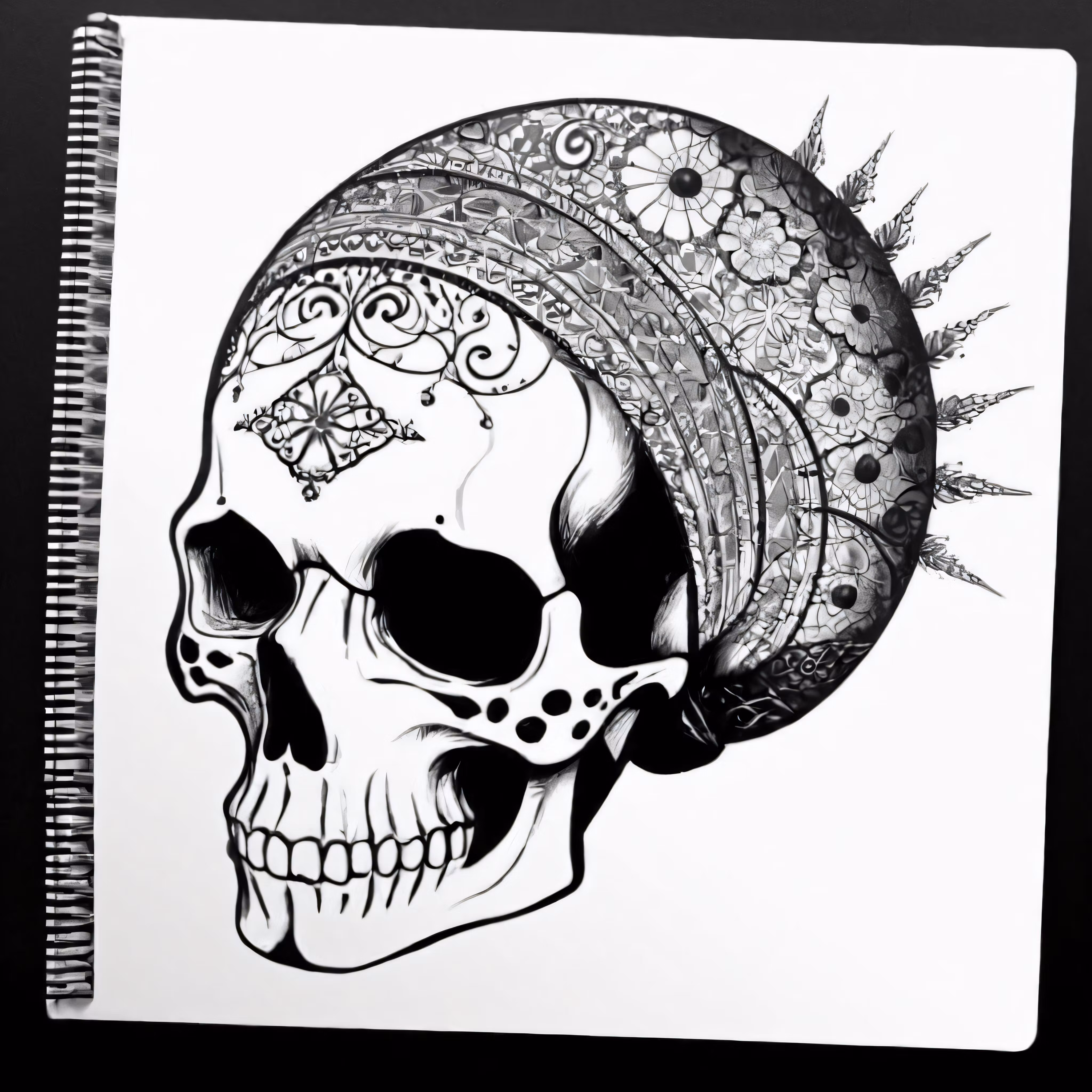 High resolution picture, free to use, an advertisement for a bicycle shop and it says 30 /an image of a skull with a bandanna hat