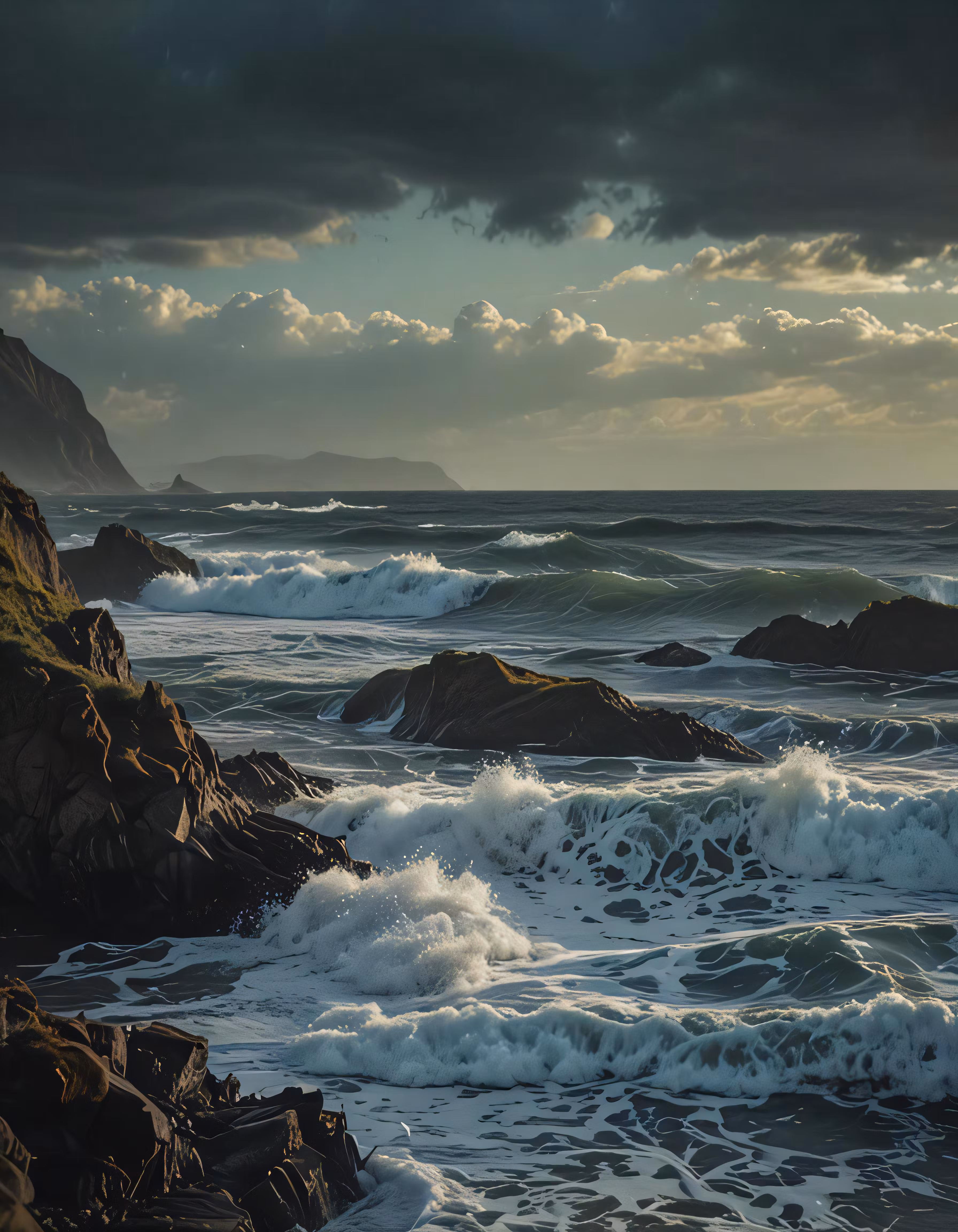 High resolution picture, free to use, an advertisement for a bicycle shop and it says 30 /an ocean scene with waves and waves crashing on the shore