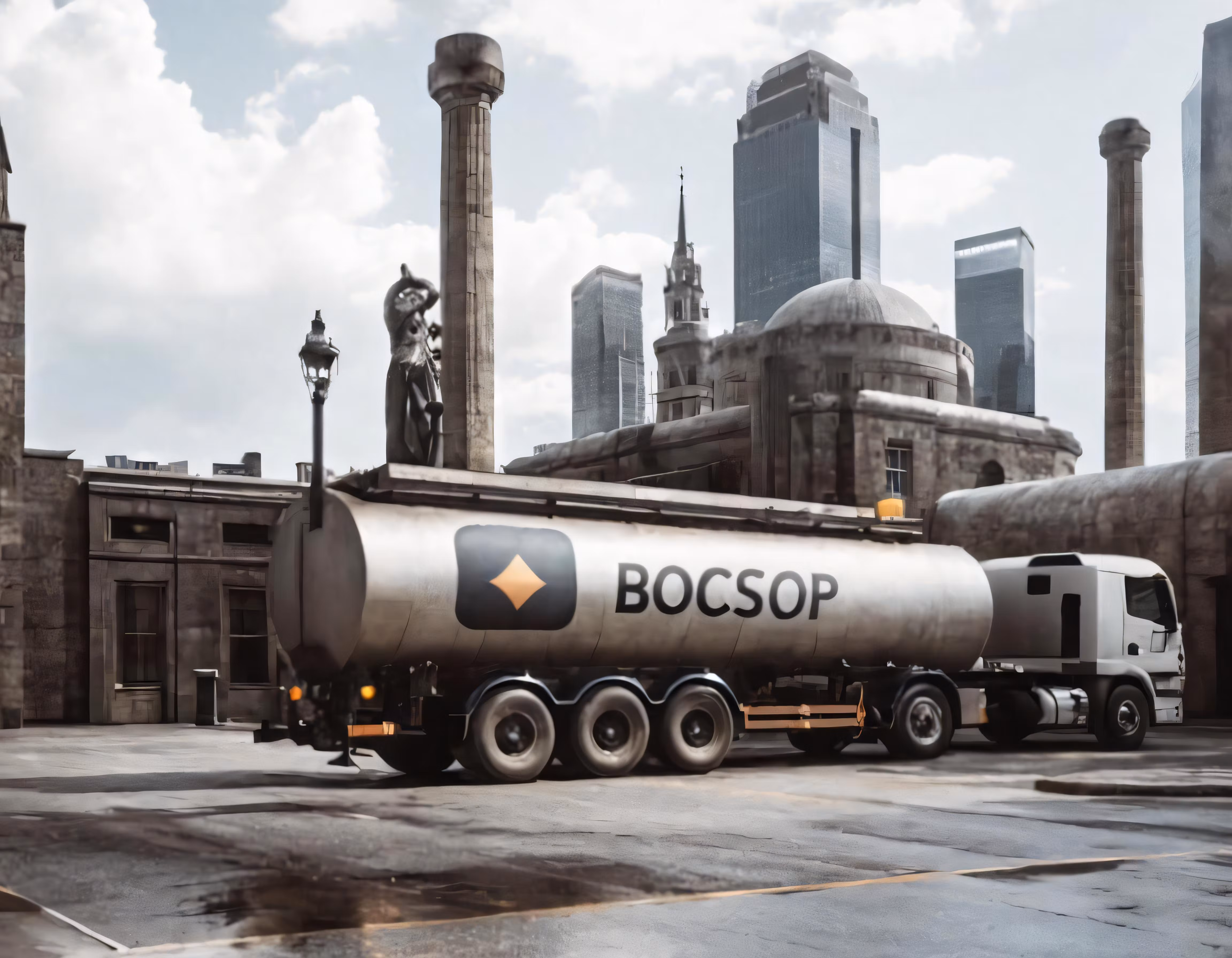 High resolution picture, free to use, an advertisement for a bicycle shop and it says 30 /an oil tanker truck parked in front of an industrial building