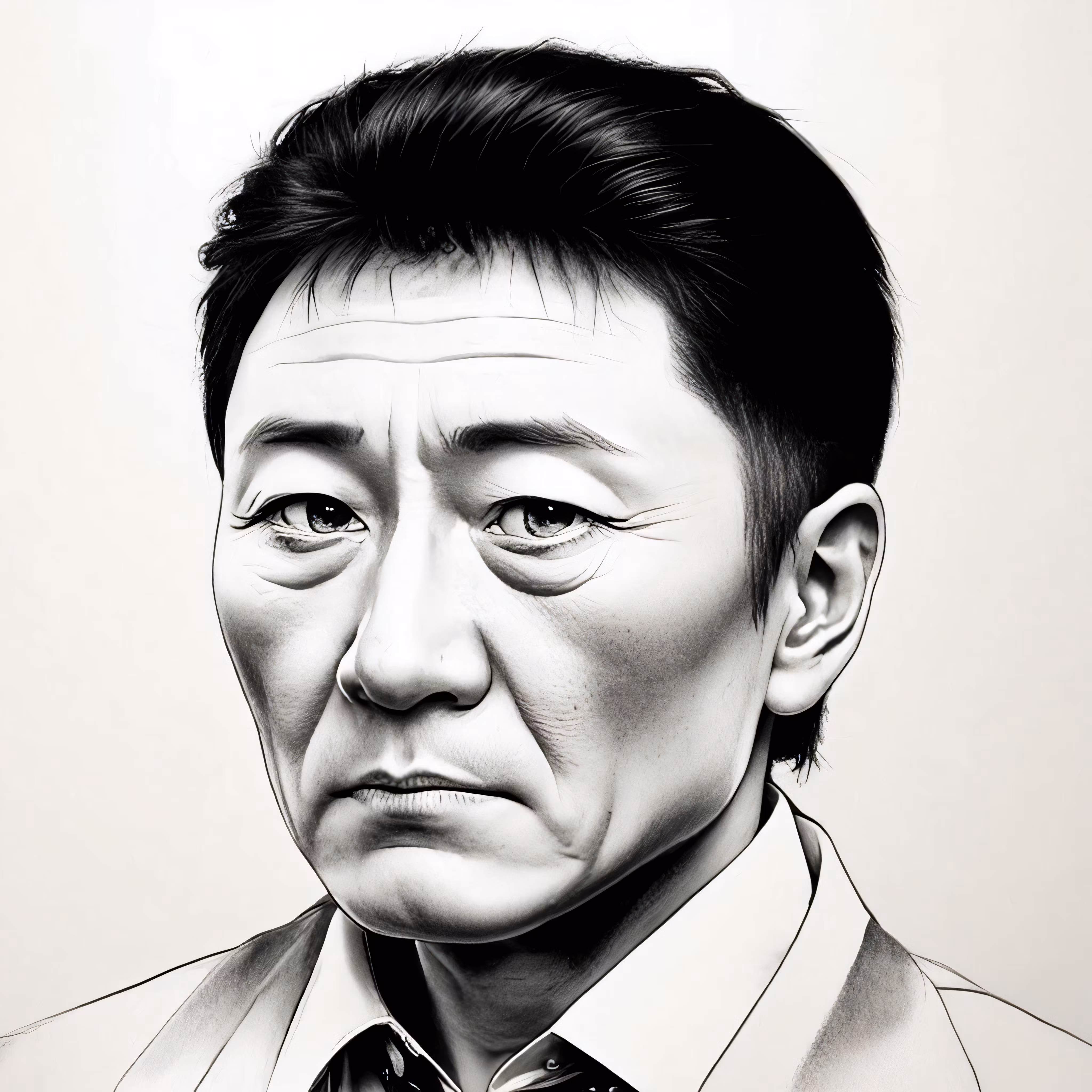 High resolution picture, free to use, an advertisement for a bicycle shop and it says 30 /an older man wearing a tie is photographed in black and white