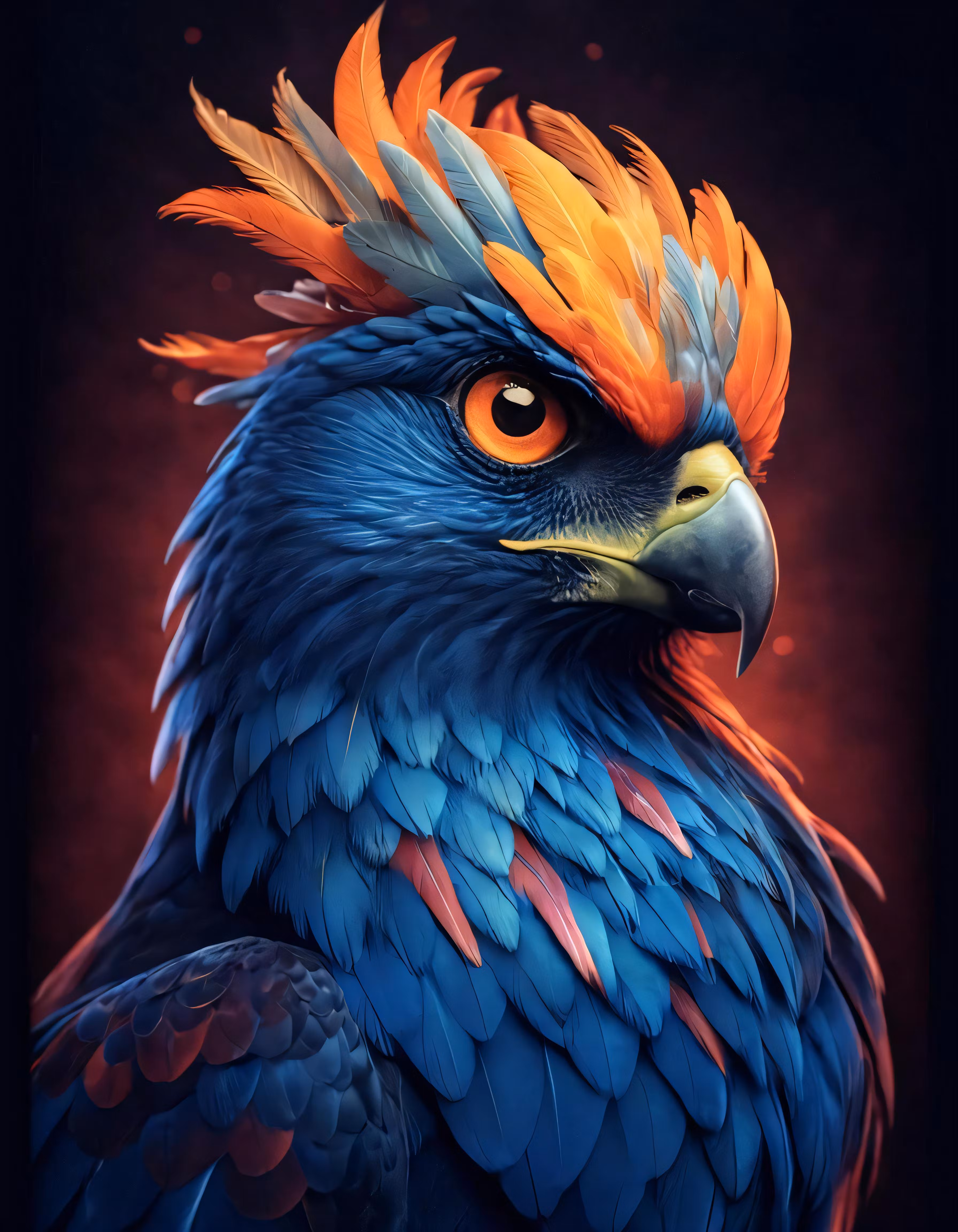 High resolution picture, free to use, an advertisement for a bicycle shop and it says 30 /blue and orange bird with a colorful comb on its head