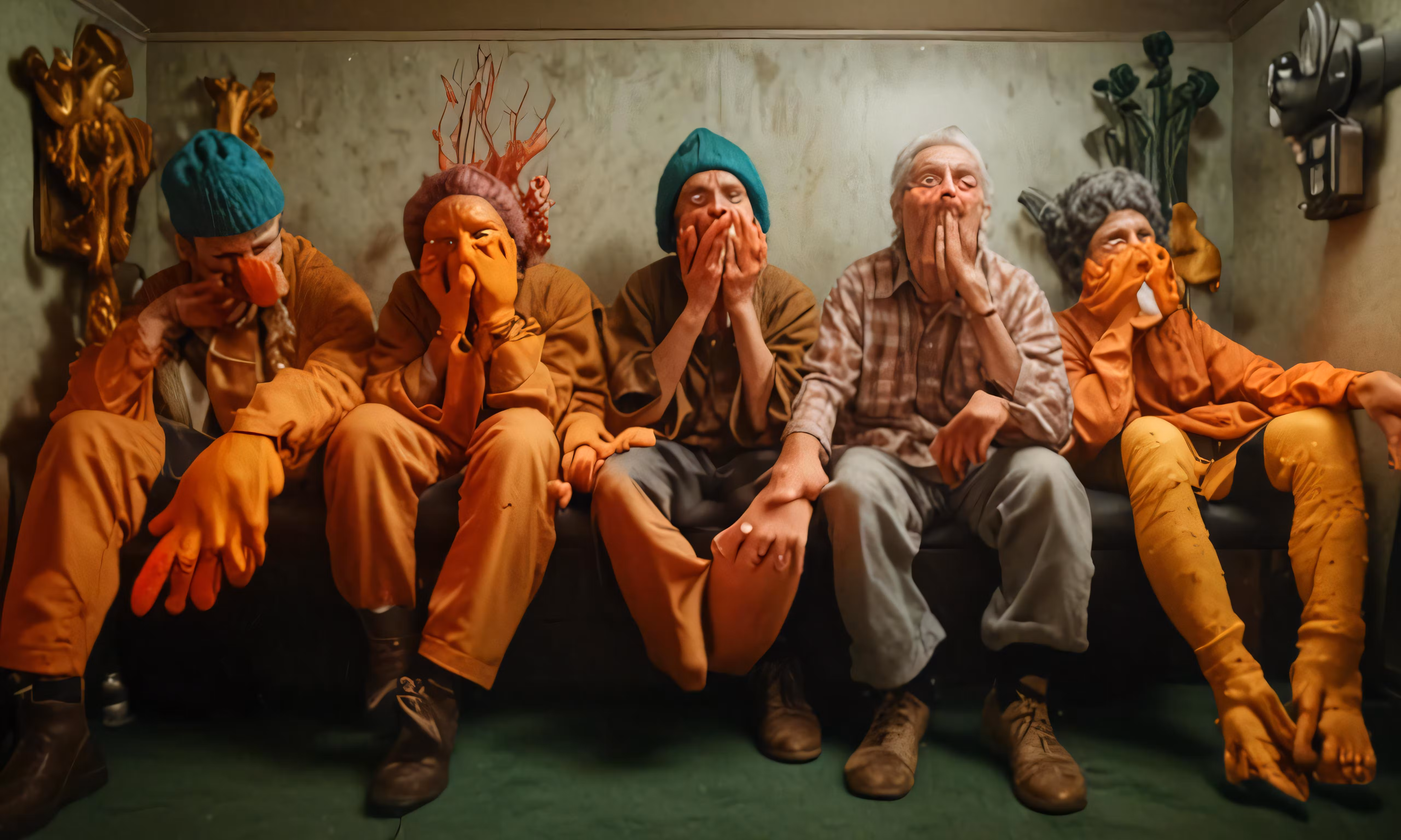 High resolution picture, free to use, an advertisement for a bicycle shop and it says 30 /five people that have colorful clothes are sitting in a room