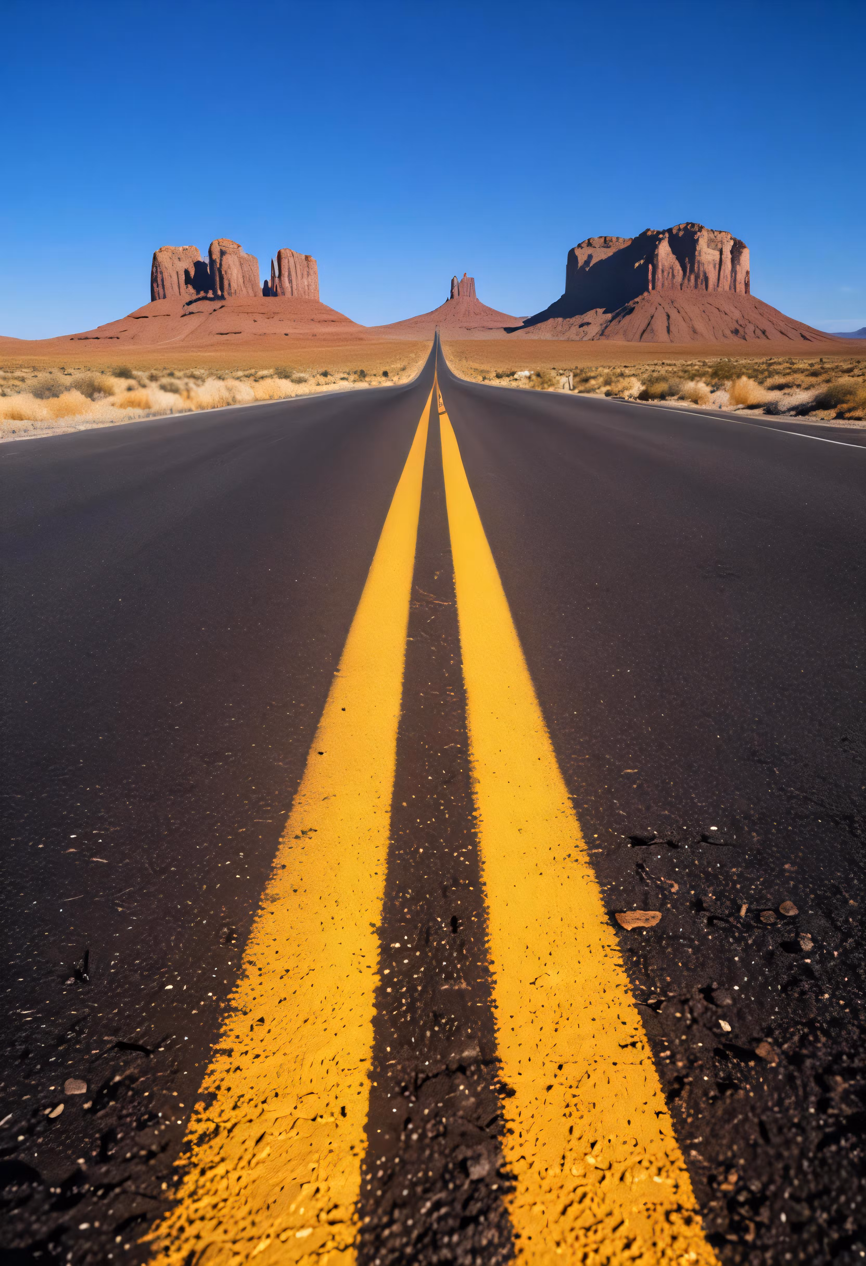 High resolution picture, free to use, an advertisement for a bicycle shop and it says 30 /long yellow lines on an open desert highway