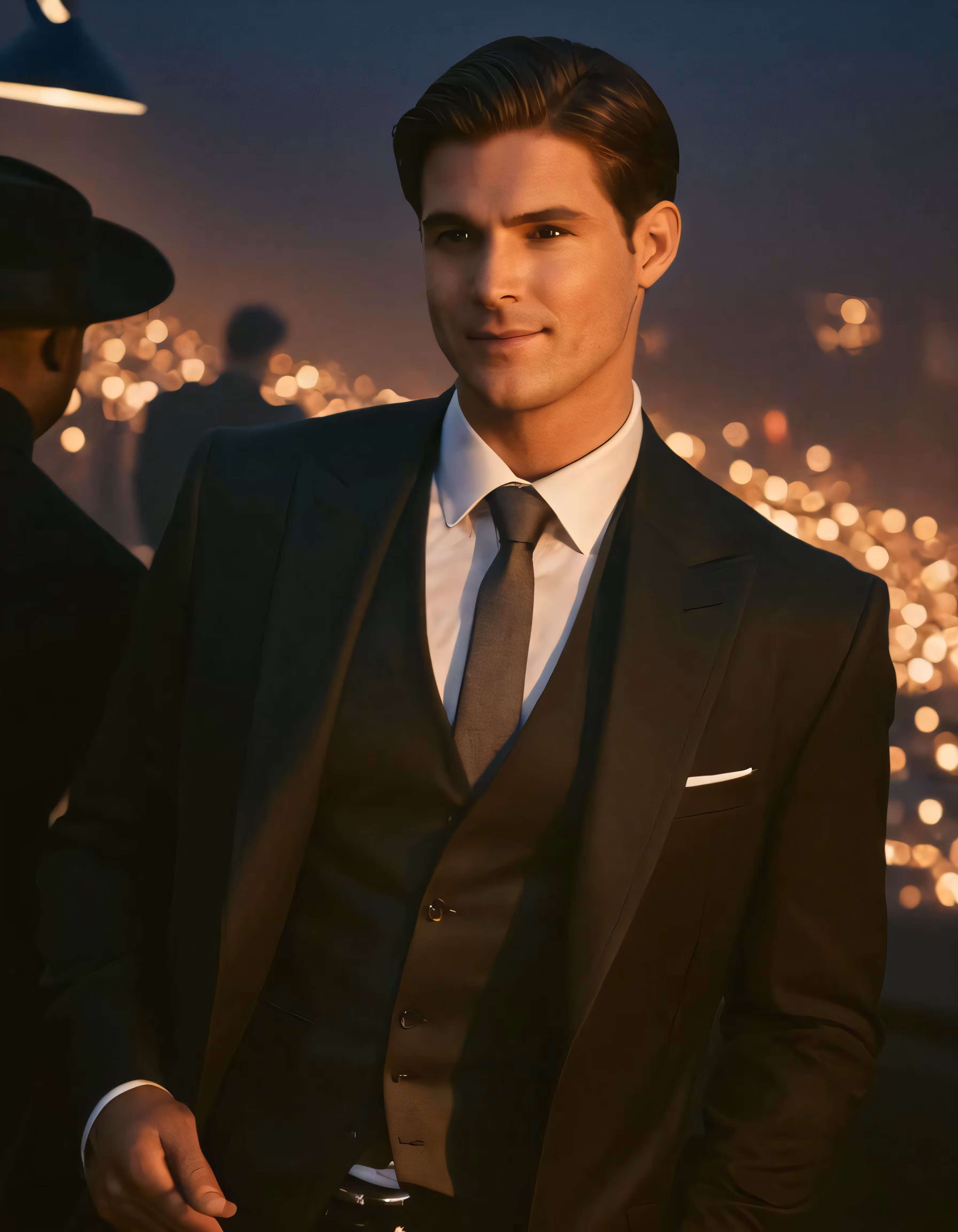 High resolution picture, free to use, an advertisement for a bicycle shop and it says 30 /man wearing black suit and dark tie standing in city