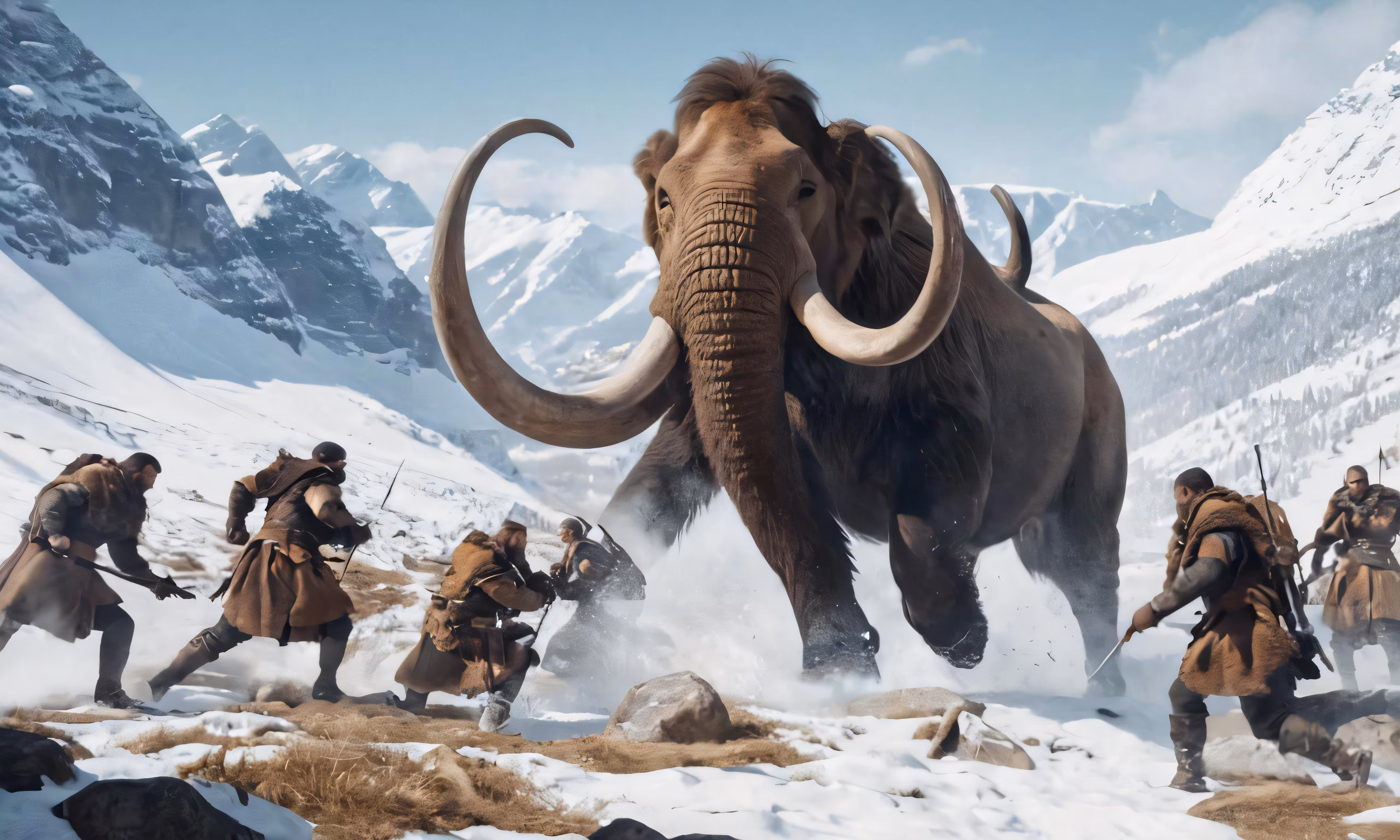 High resolution picture, free to use, an advertisement for a bicycle shop and it says 30 /men with long, tusks and an elephant are fighting through the snow
