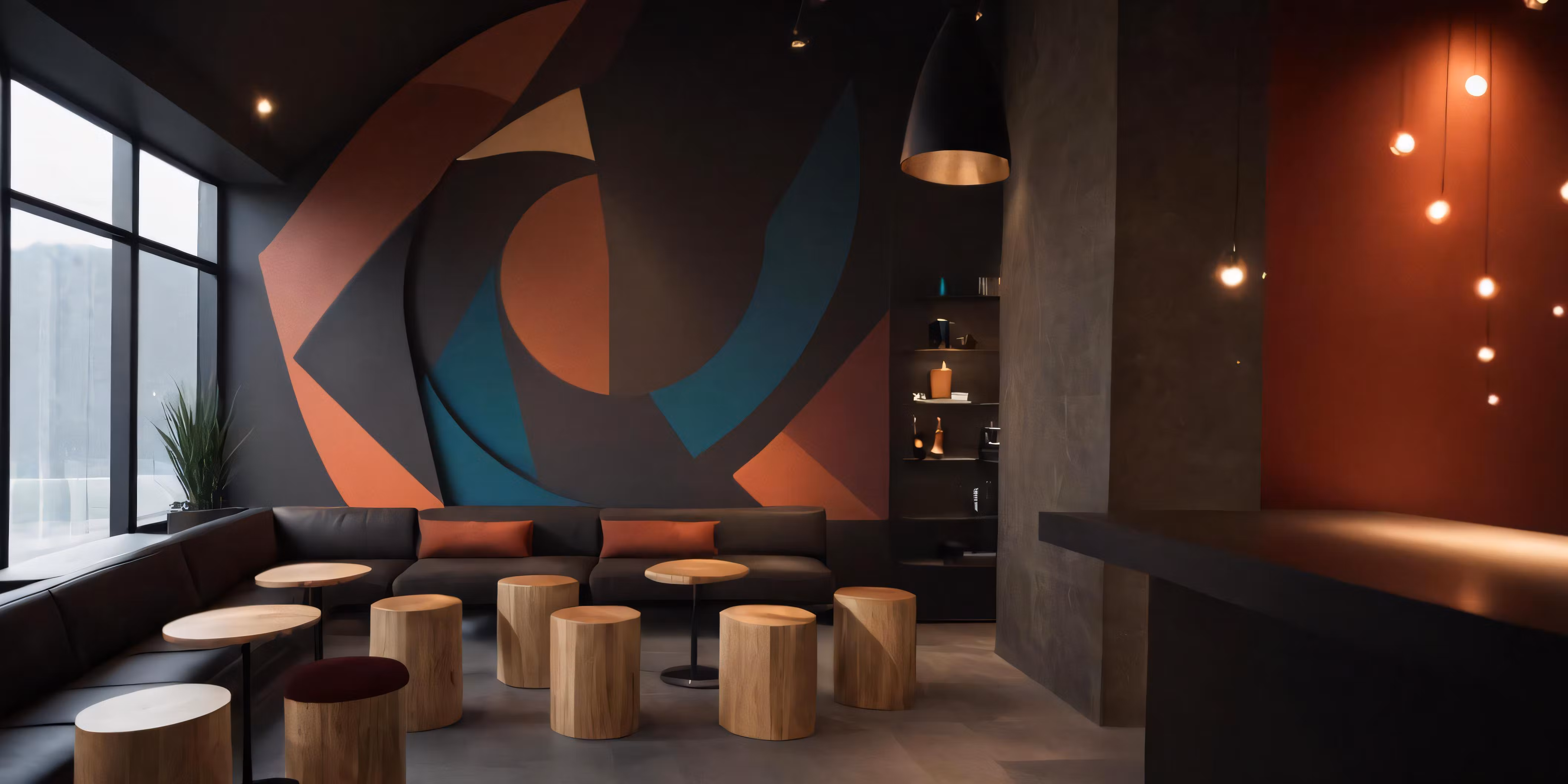 High resolution picture, free to use, an advertisement for a bicycle shop and it says 30 /several tables and stools in a large room