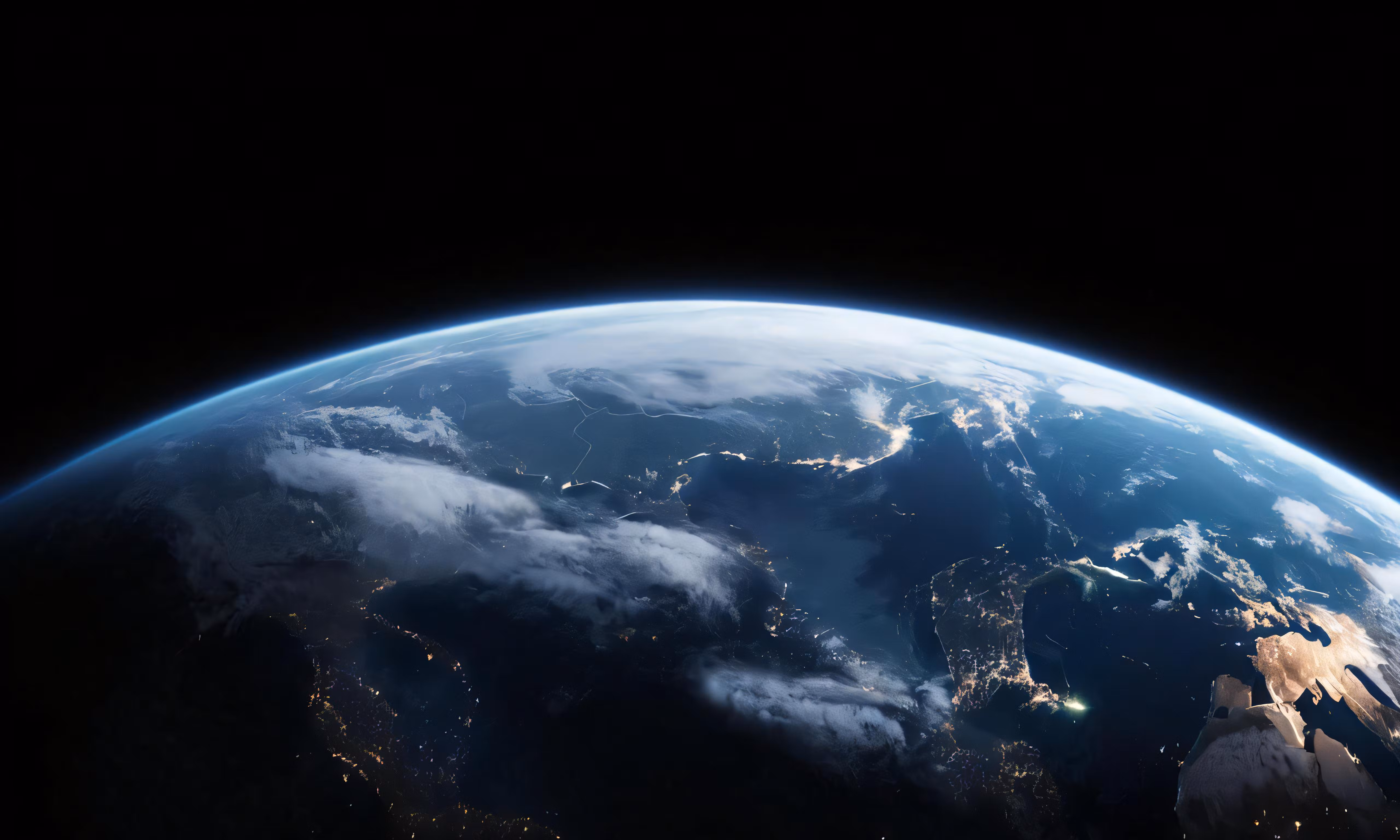 High resolution picture, free to use, an advertisement for a bicycle shop and it says 30 /the earth seen from space, showing cities at night