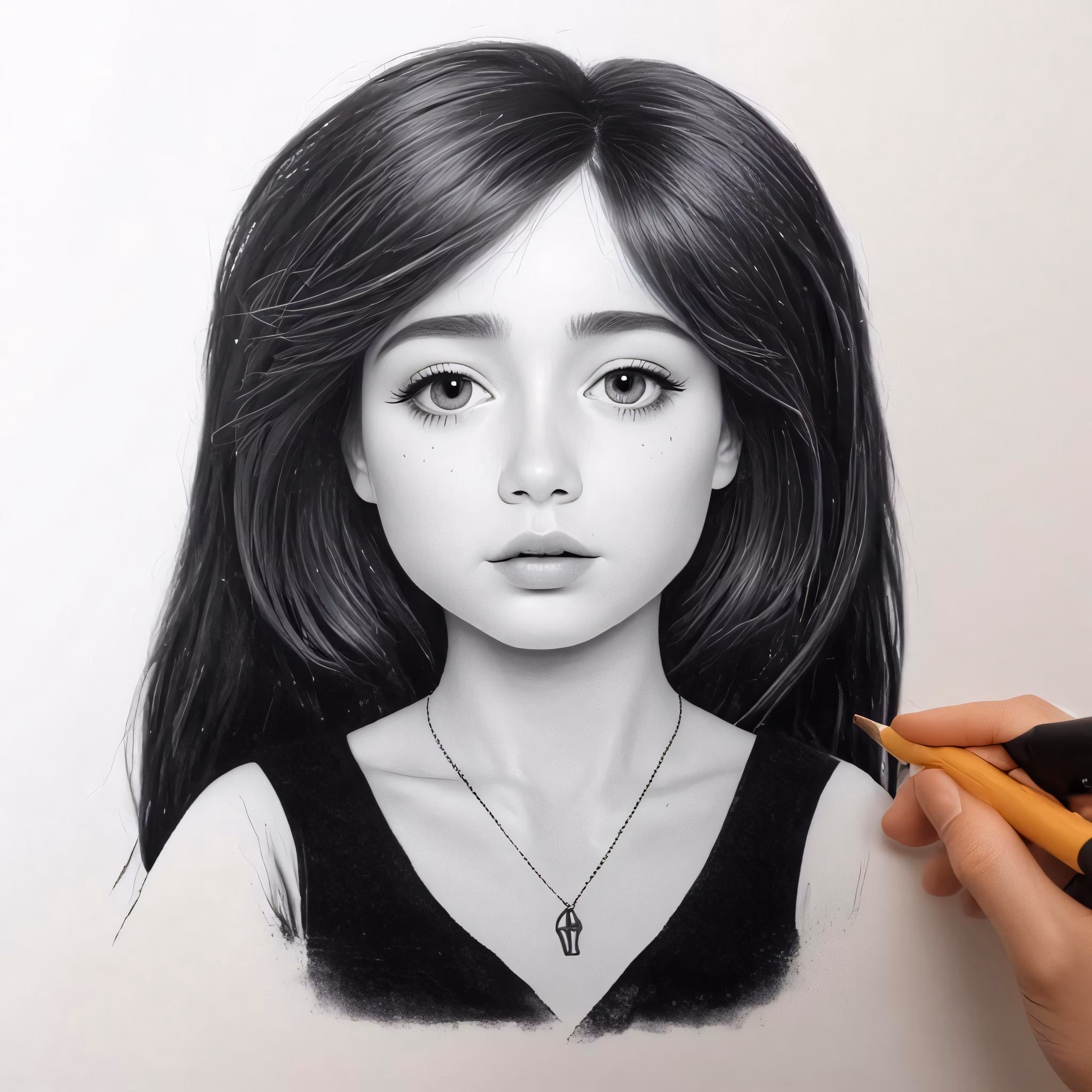 High resolution picture, free to use, an advertisement for a bicycle shop and it says 30 /the girl with black hair has a pencil drawing