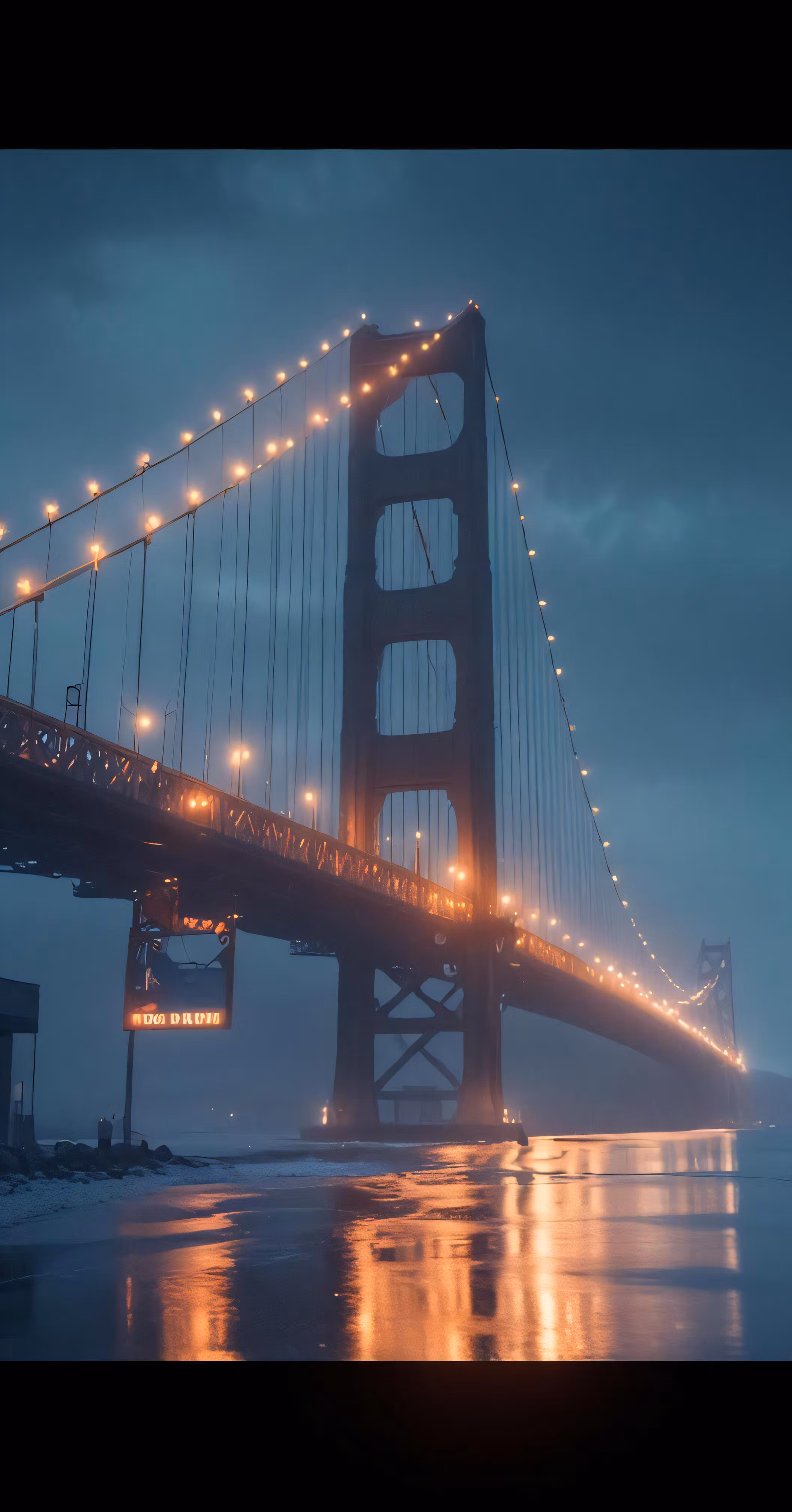 High resolution picture, free to use, an advertisement for a bicycle shop and it says 30 /the golden gate bridge at night from across the bay