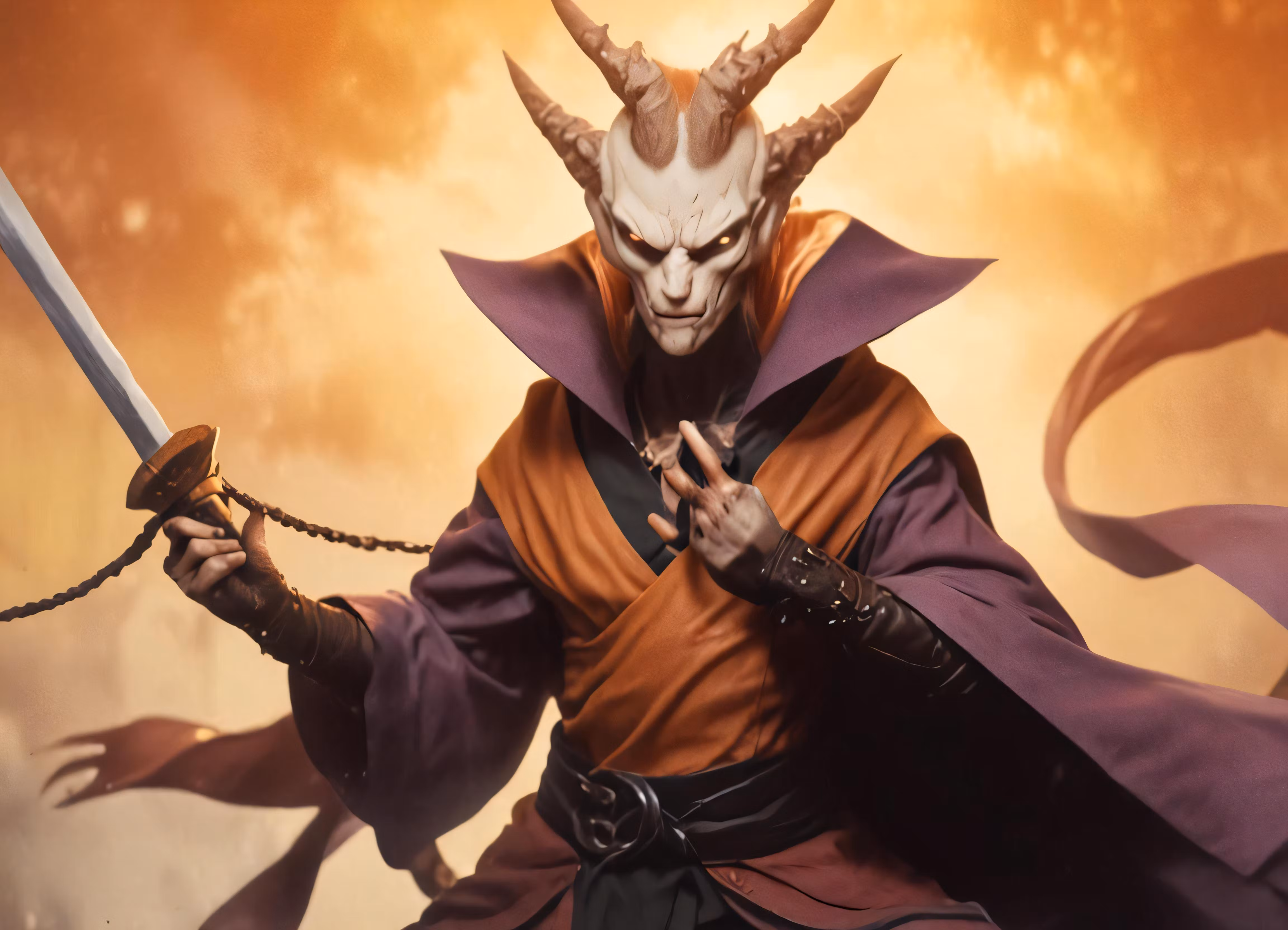 High resolution picture, free to use, an advertisement for a bicycle shop and it says 30 /the masked warrior is holding his sword while in front of a golden background
