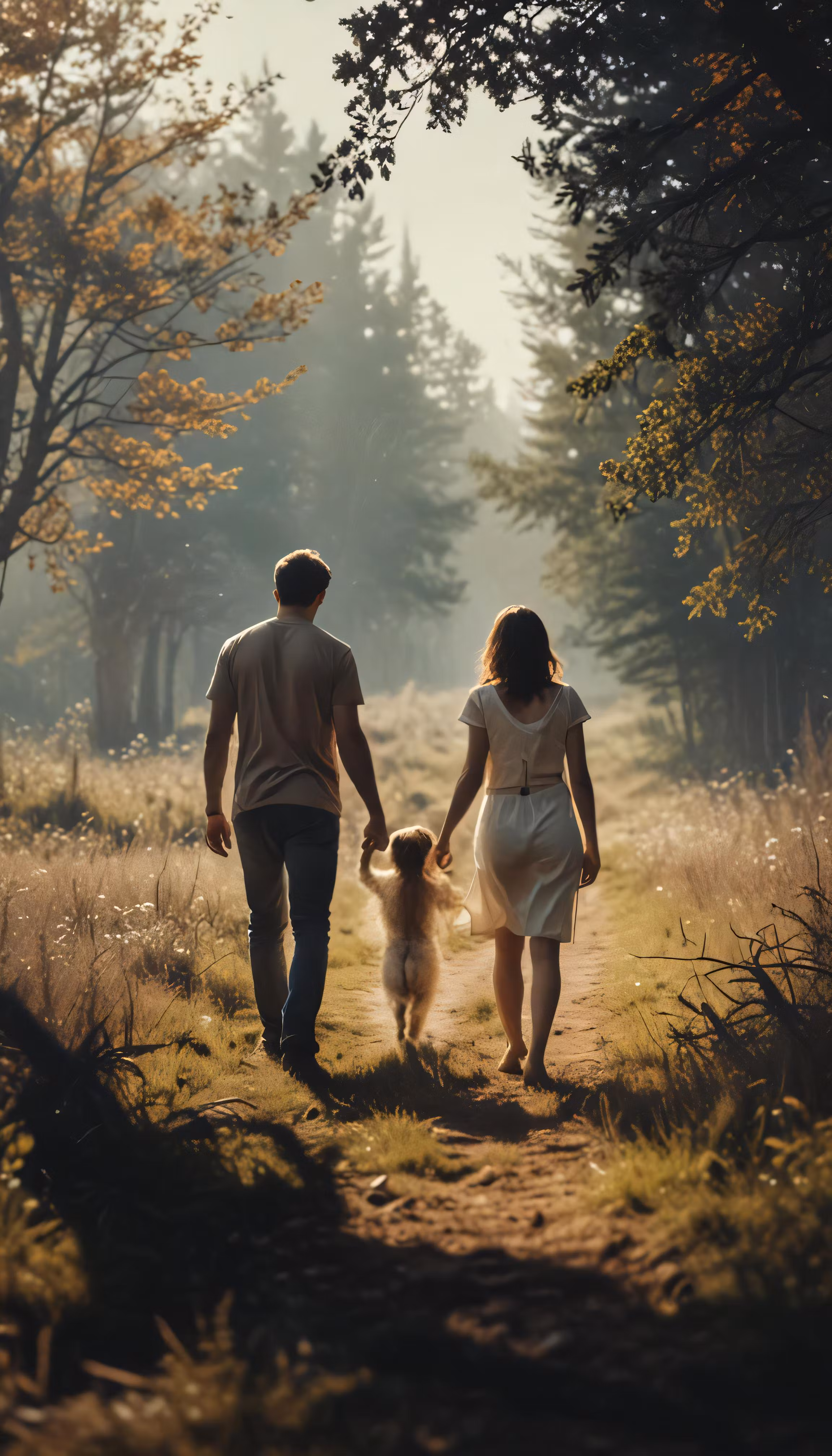 High resolution picture, free to use, an advertisement for a bicycle shop and it says 30 /the people are walking through the woods with their dog