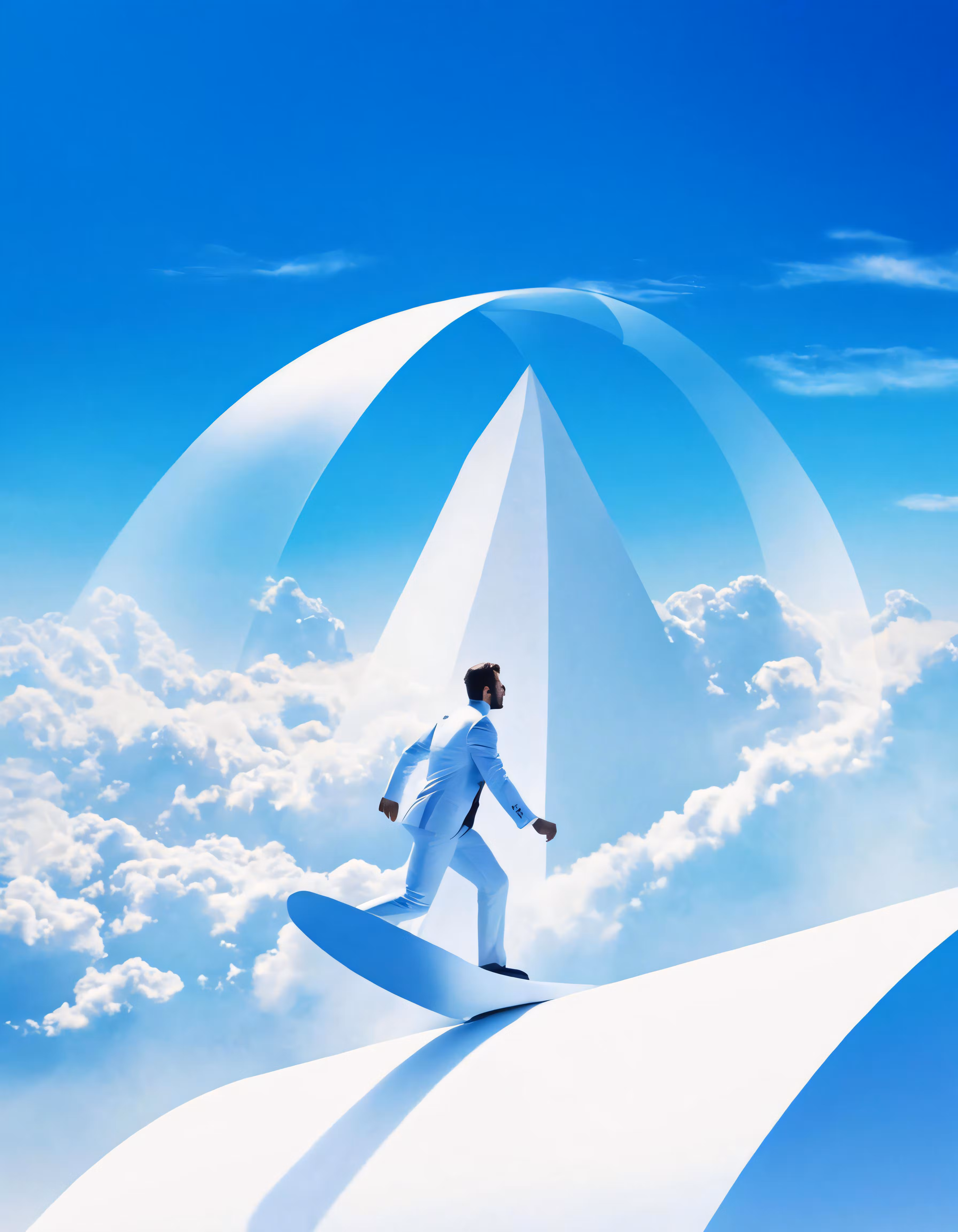 High resolution picture, free to use, an advertisement for a bicycle shop and it says 30 /the radio has an am /a man is walking in the clouds in front of a sky with an umbrella