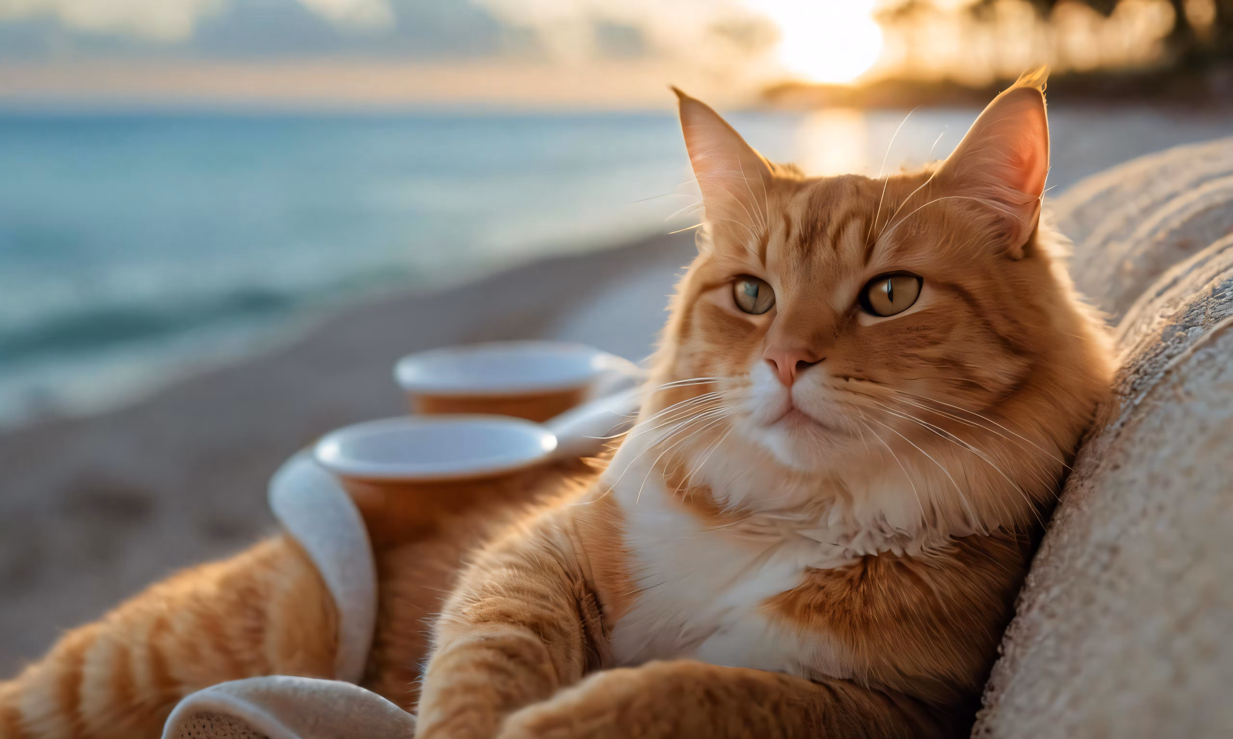 High resolution picture, free to use, an advertisement for a bicycle shop and it says 30 /the radio has an am /an orange cat is sitting on a sofa by the water