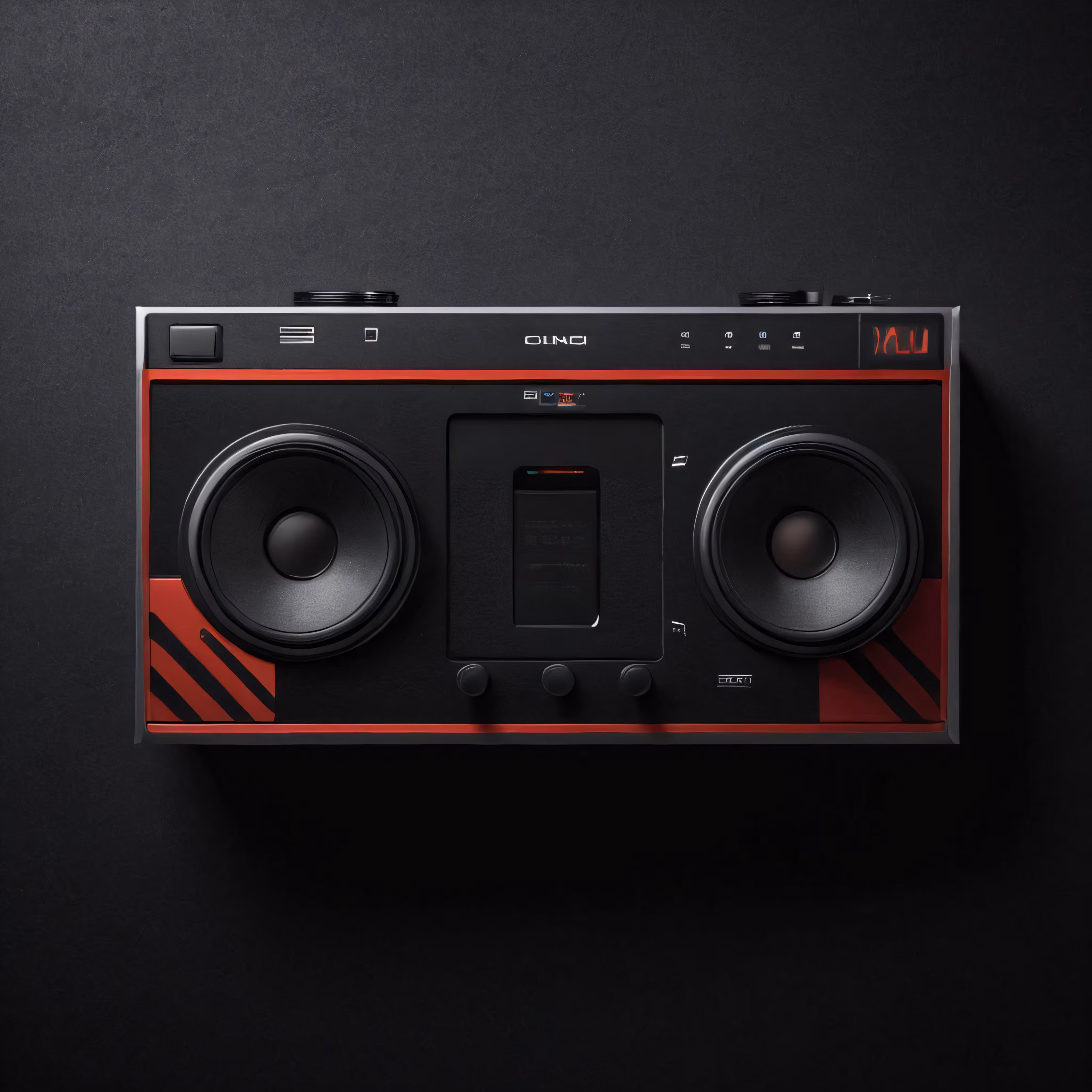 High resolution picture, free to use, an advertisement for a bicycle shop and it says 30 /the radio is connected to two speakers and is black with red trim