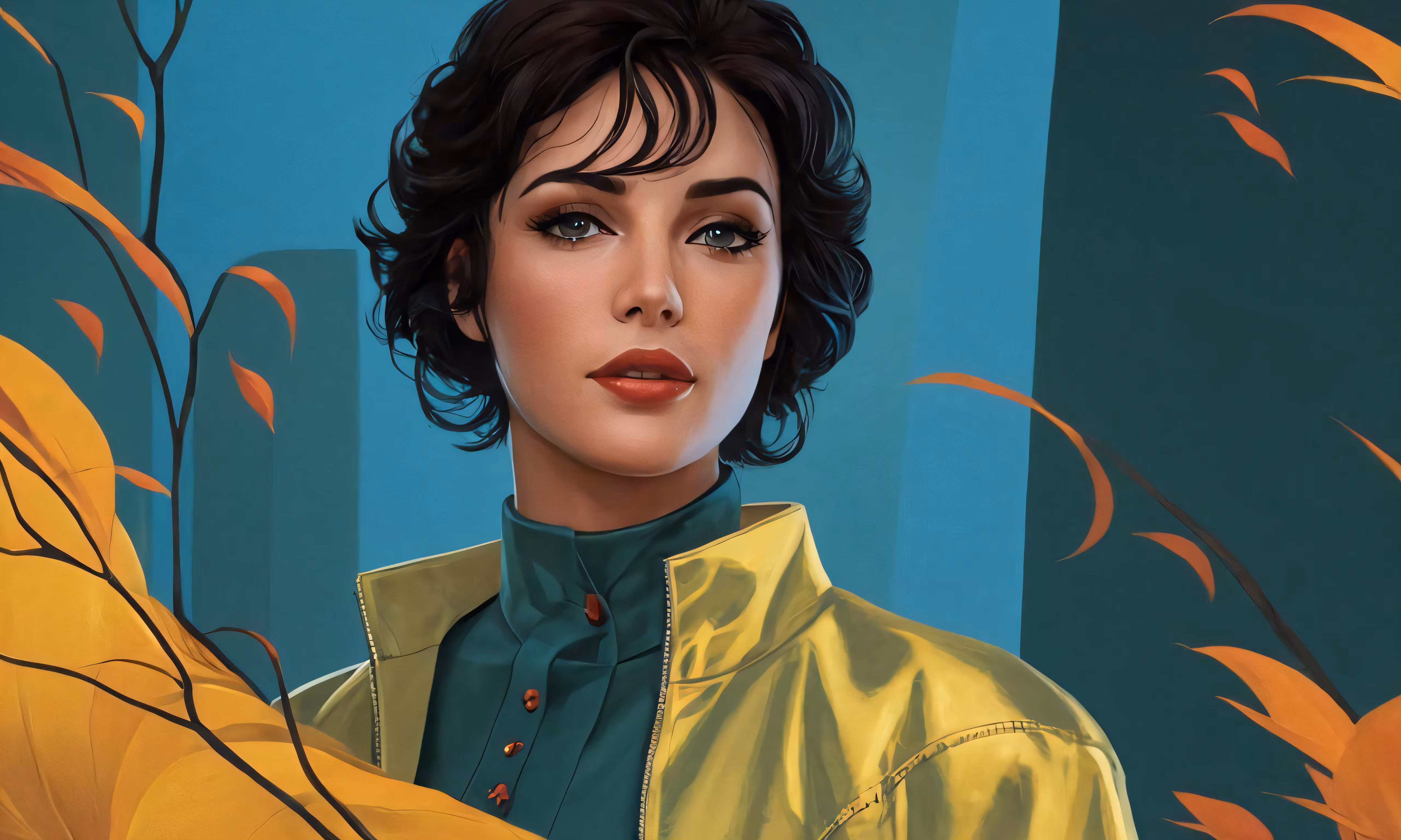 High resolution picture, free to use, an advertisement for a bicycle shop and it says 30 /the video game character has her hand on her shoulder