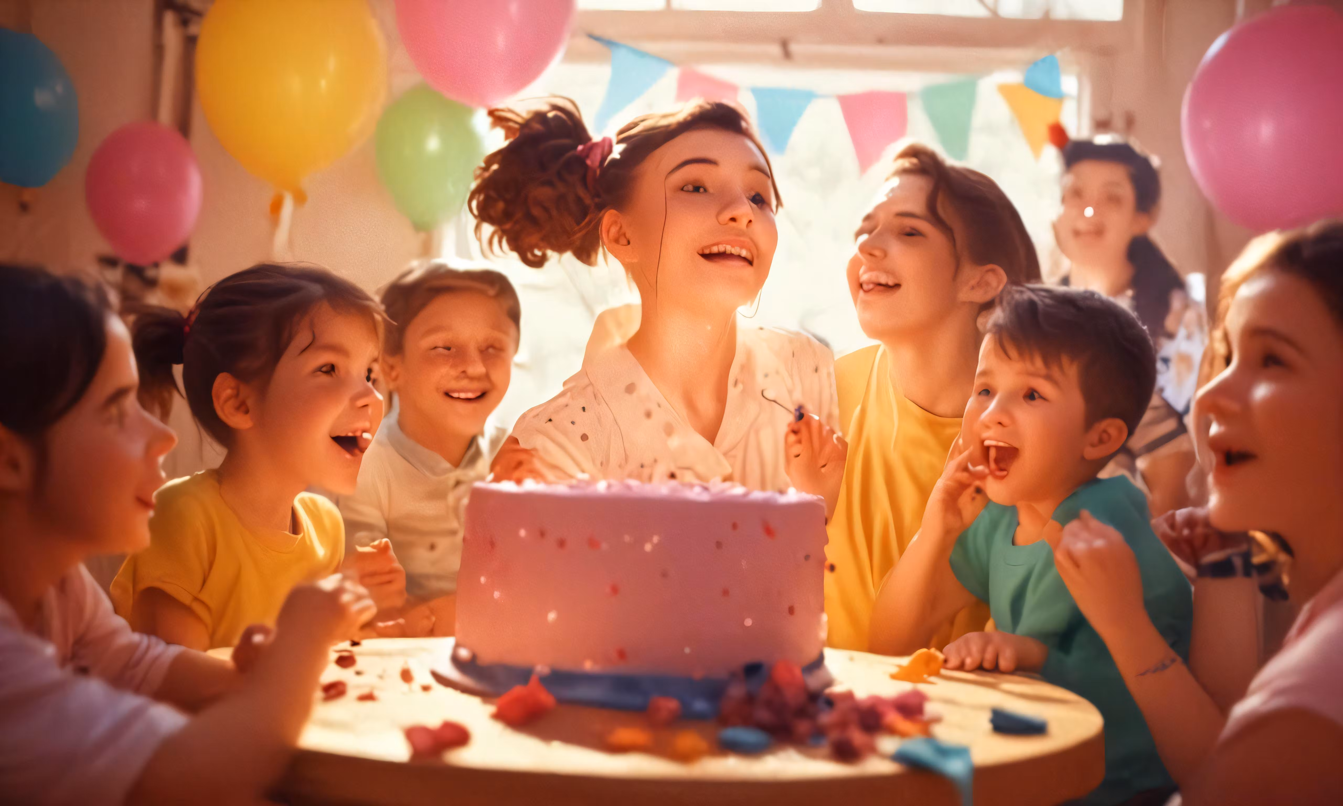 High resolution picture, free to use, an advertisement for a bicycle shop and it says 30 /there is a cake with candles on it and people around it