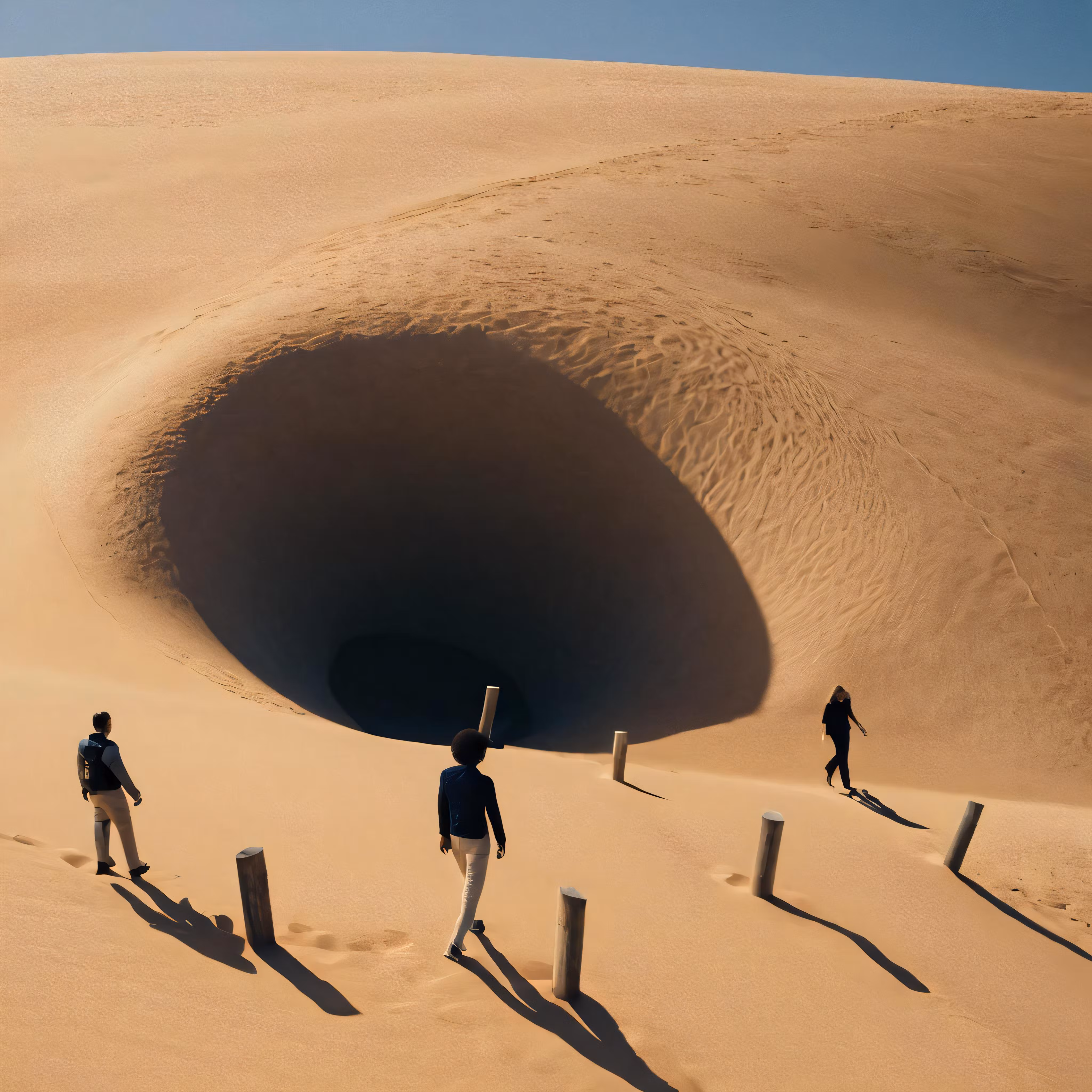 High resolution picture, free to use, an advertisement for a bicycle shop and it says 30 /three people are standing on the sand by a cave