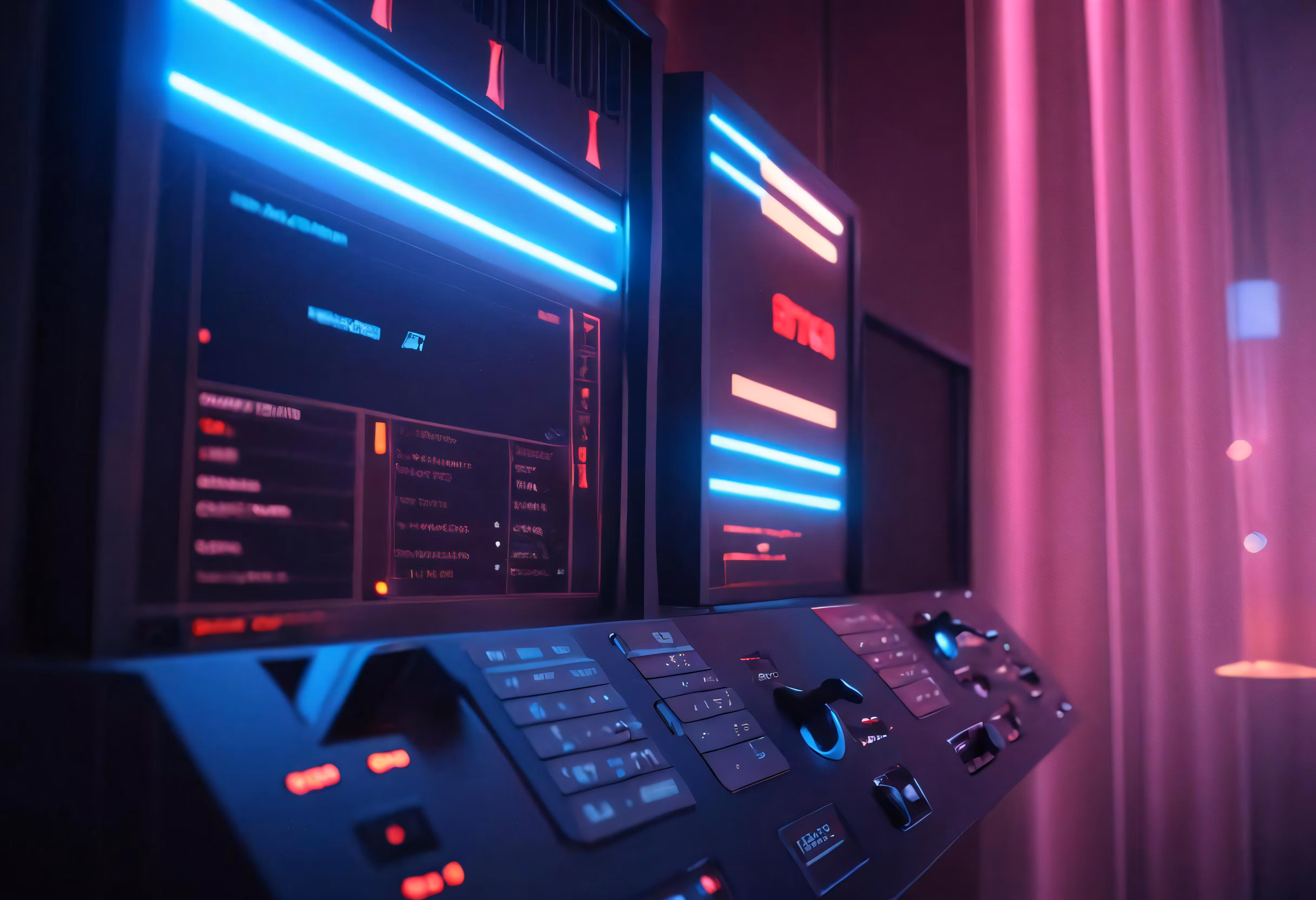 High resolution picture, free to use, an advertisement for a bicycle shop and it says 30 /two monitors in the dark lit room
