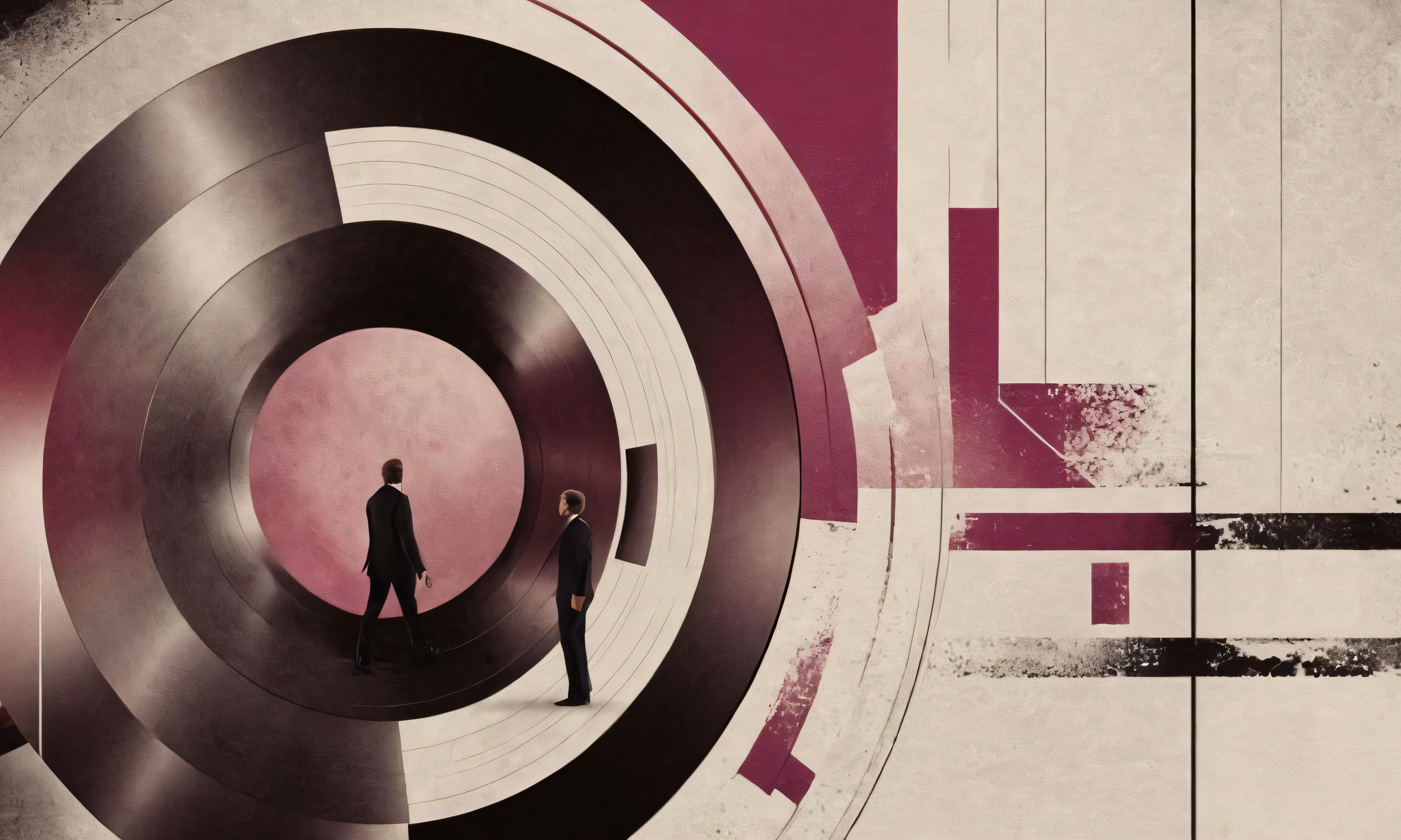High resolution picture, free to use, an advertisement for a bicycle shop and it says 30 /two people standing inside a spiral shaped area