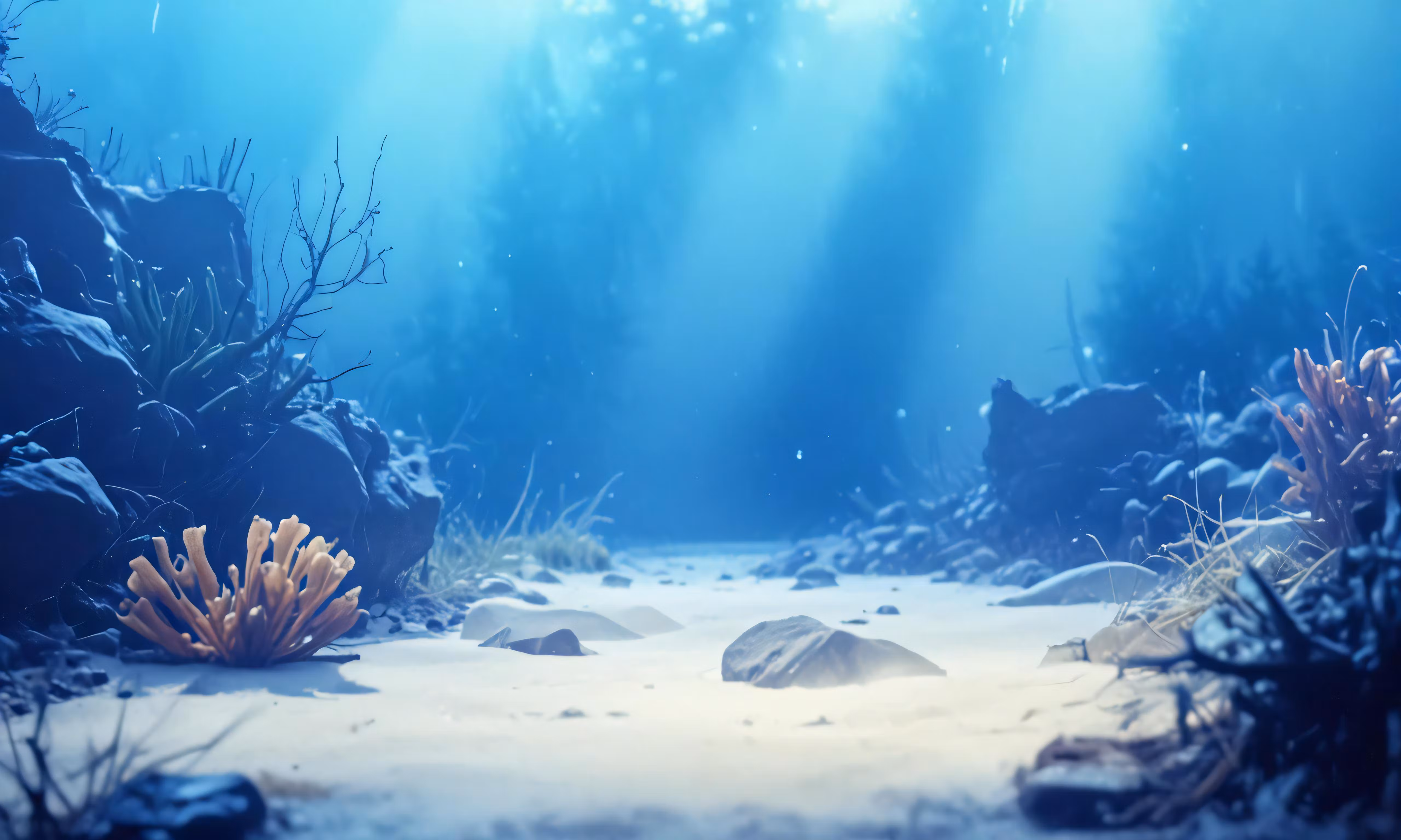 High resolution picture, free to use, an advertisement for a bicycle shop and it says 30 /underwater scene with rocks and plants and sunlight