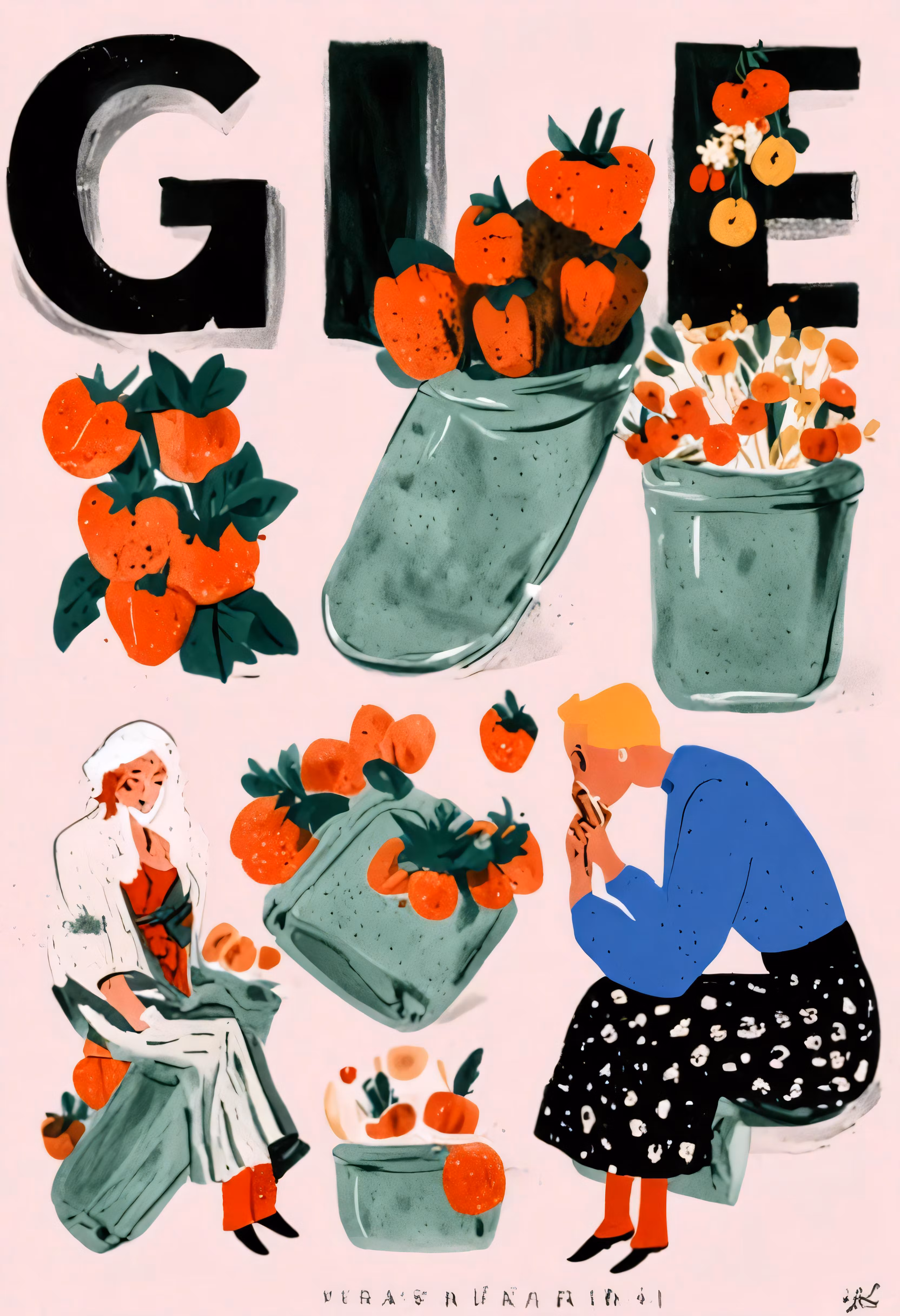 High resolution picture, free to use, an advertisement for a floral shop featuring a woman looking at a vase of flowers