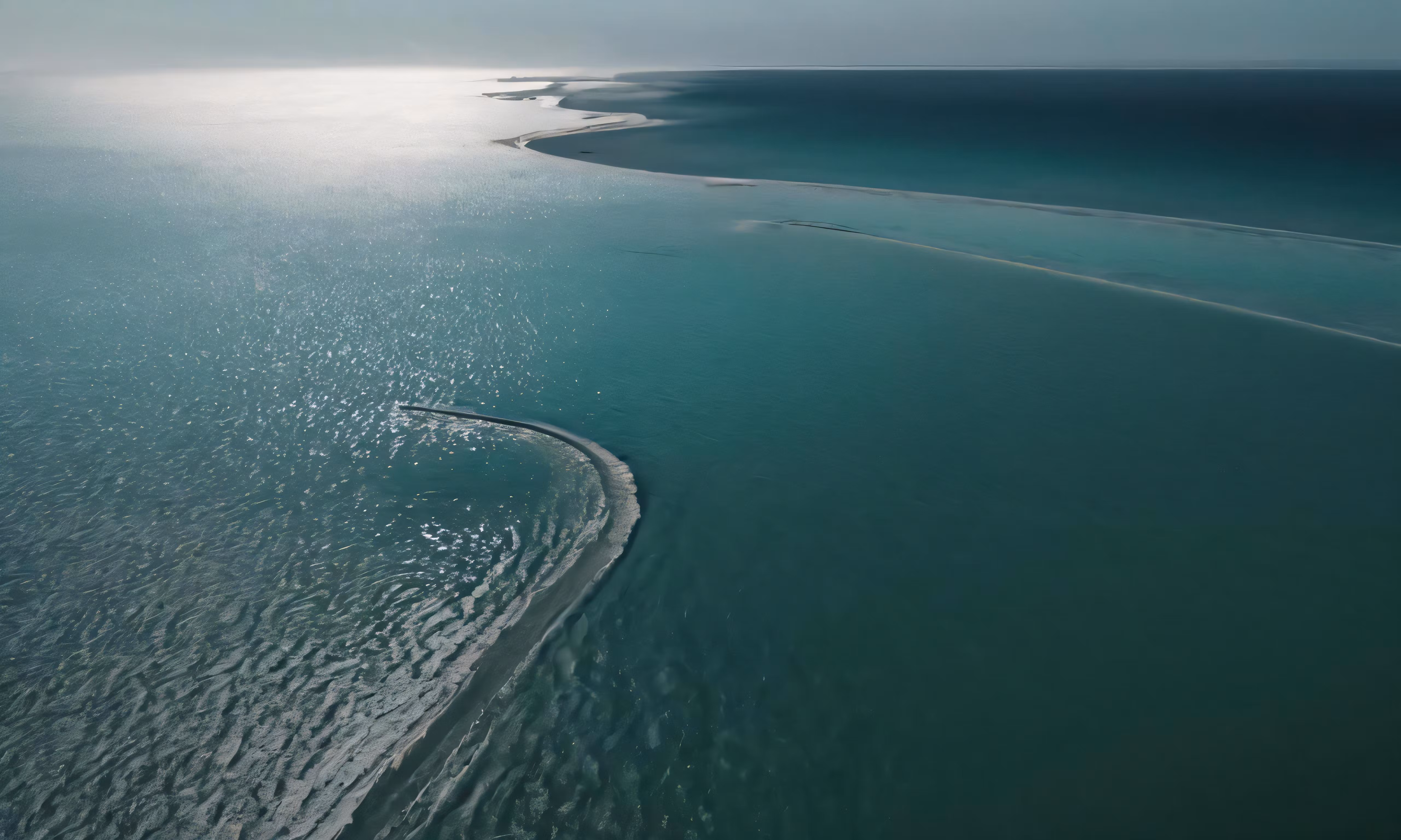 High resolution picture, free to use, an aerial view of a body of water, taken from above