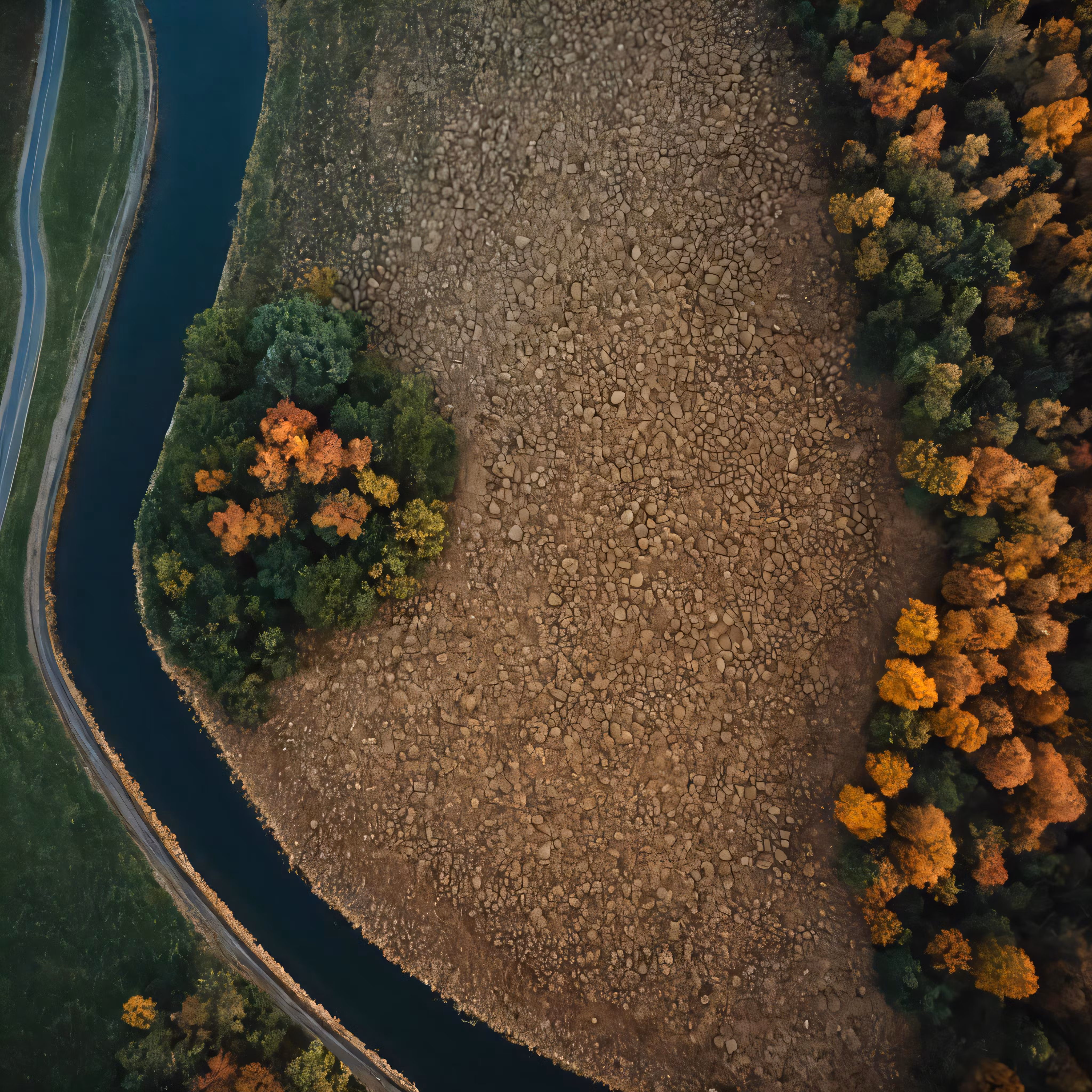 High resolution picture, free to use, an aerial view of a creek and trees