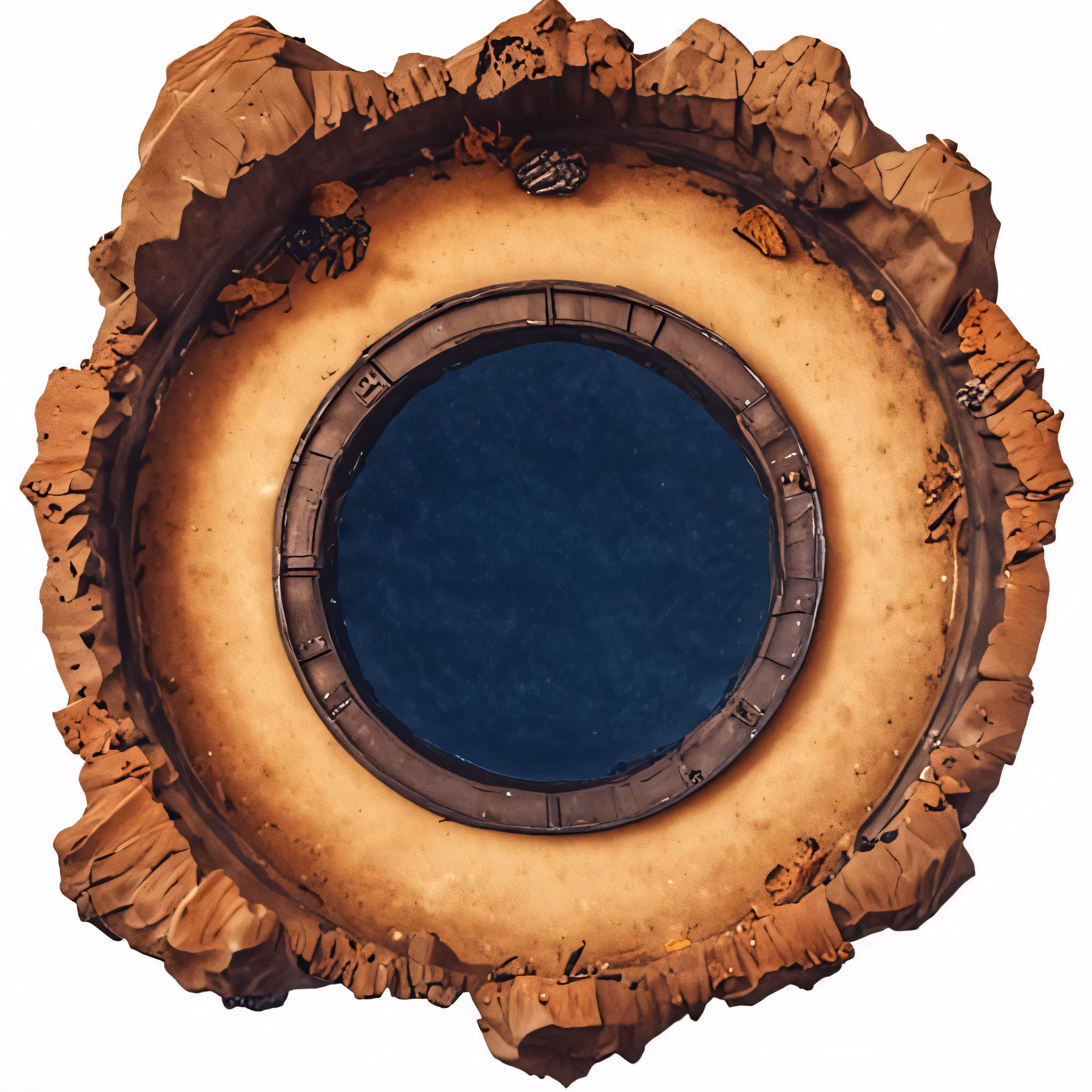 High resolution picture, free to use, an aerial view of a round rock formation