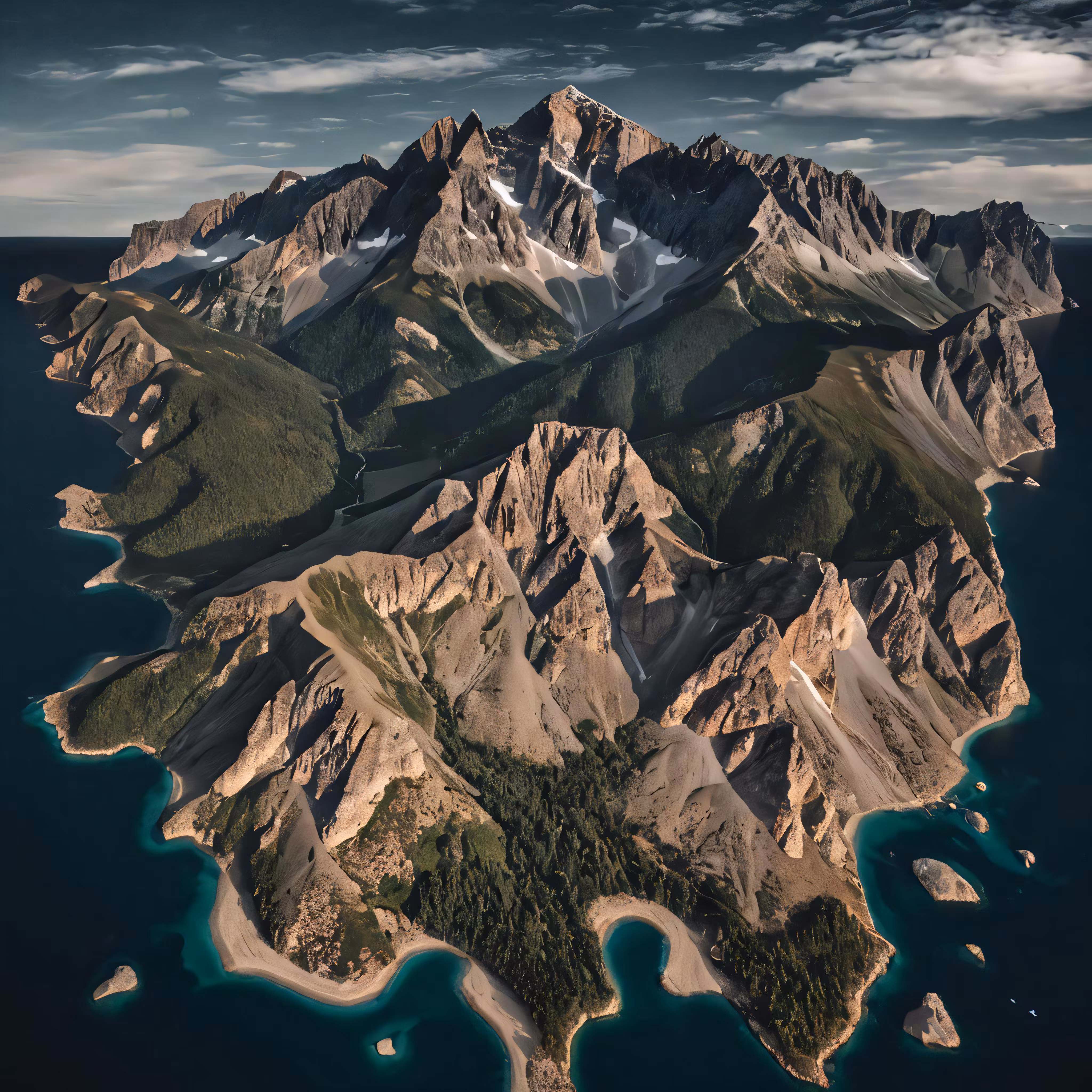 High resolution picture, free to use, an aerial view of mountains, lakes and lakes